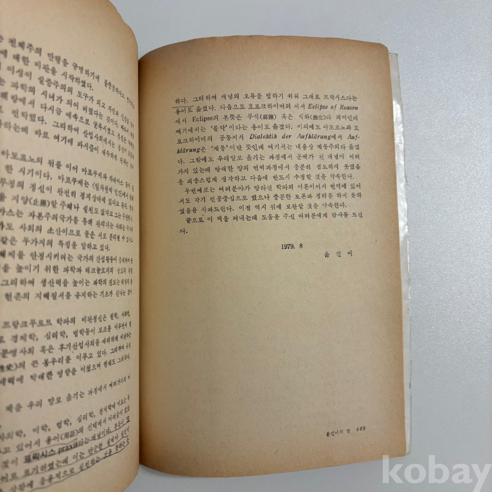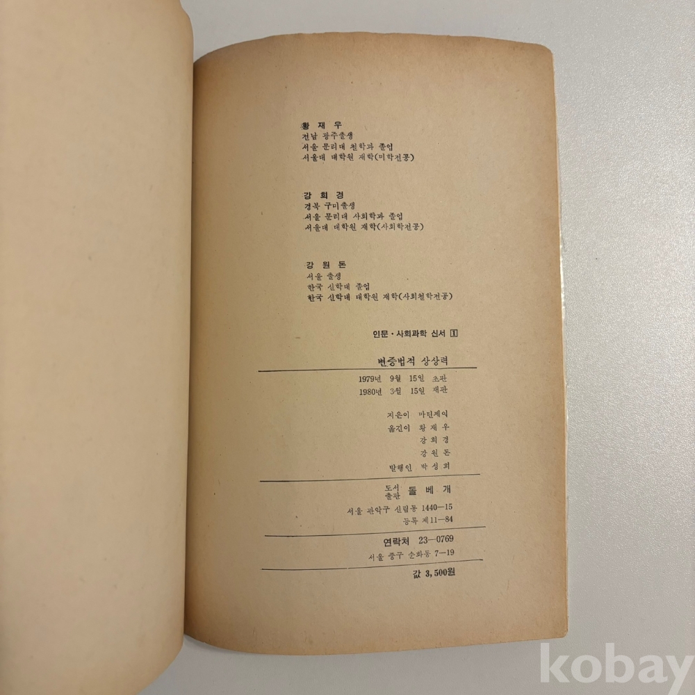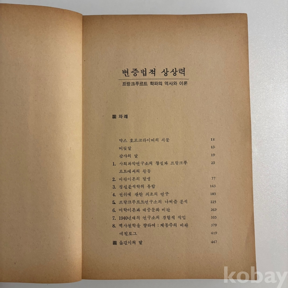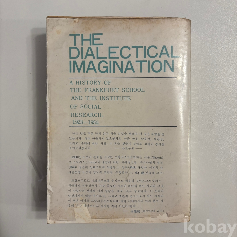 [프랑크푸르트학파, 마르쿠제, 하버마스] 제이마틴 저, <변증법적 상상력>, 돌베개, p. 449, 1980, 상태 중상급(필기있음, 사진참조)