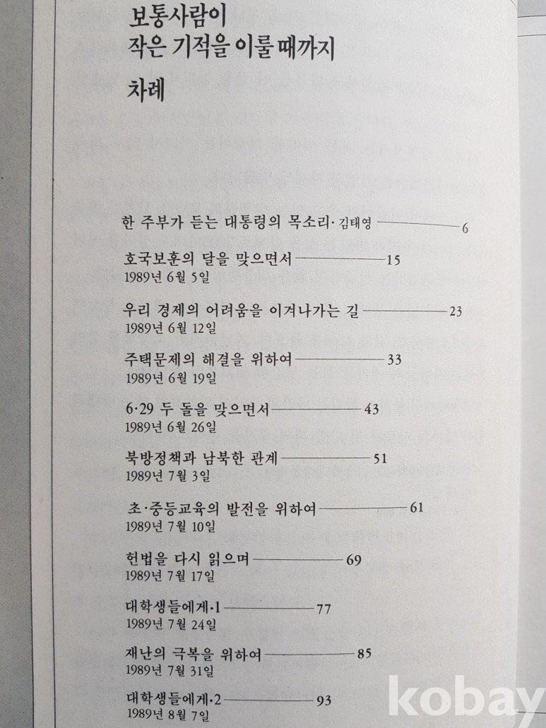 설명: 1989년 노태우 대통령이 라디오에 나와서 한 이야기와 정책과 칼럼을 기록한 책입니다.