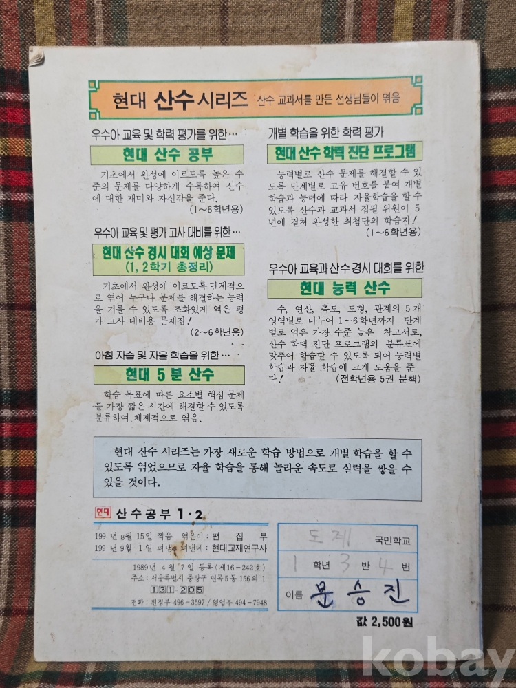 <투킴스> 국민학교 1학년 참고서,교과서 - 산수공부 1-2