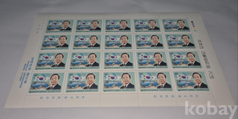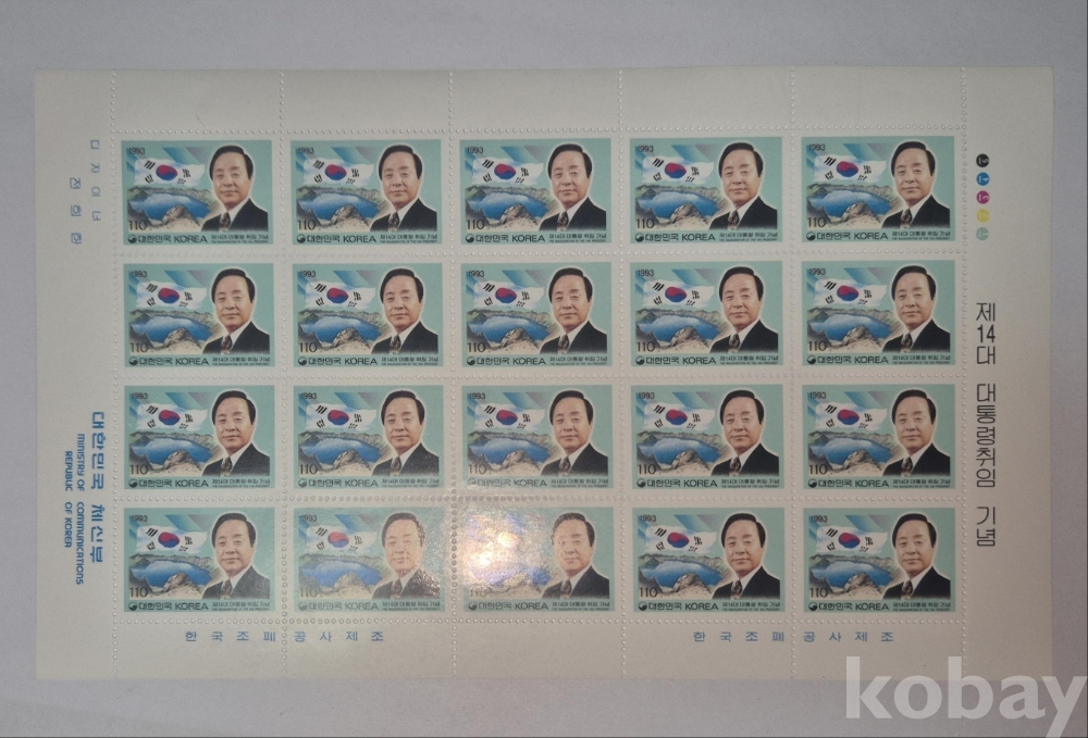 1993년 발행된 '제14대 대통령 취임 기념우표' 전지입니다.