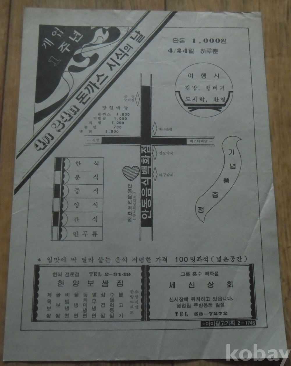 안동자료(전단지): 안동음식백화점 개업 1주년