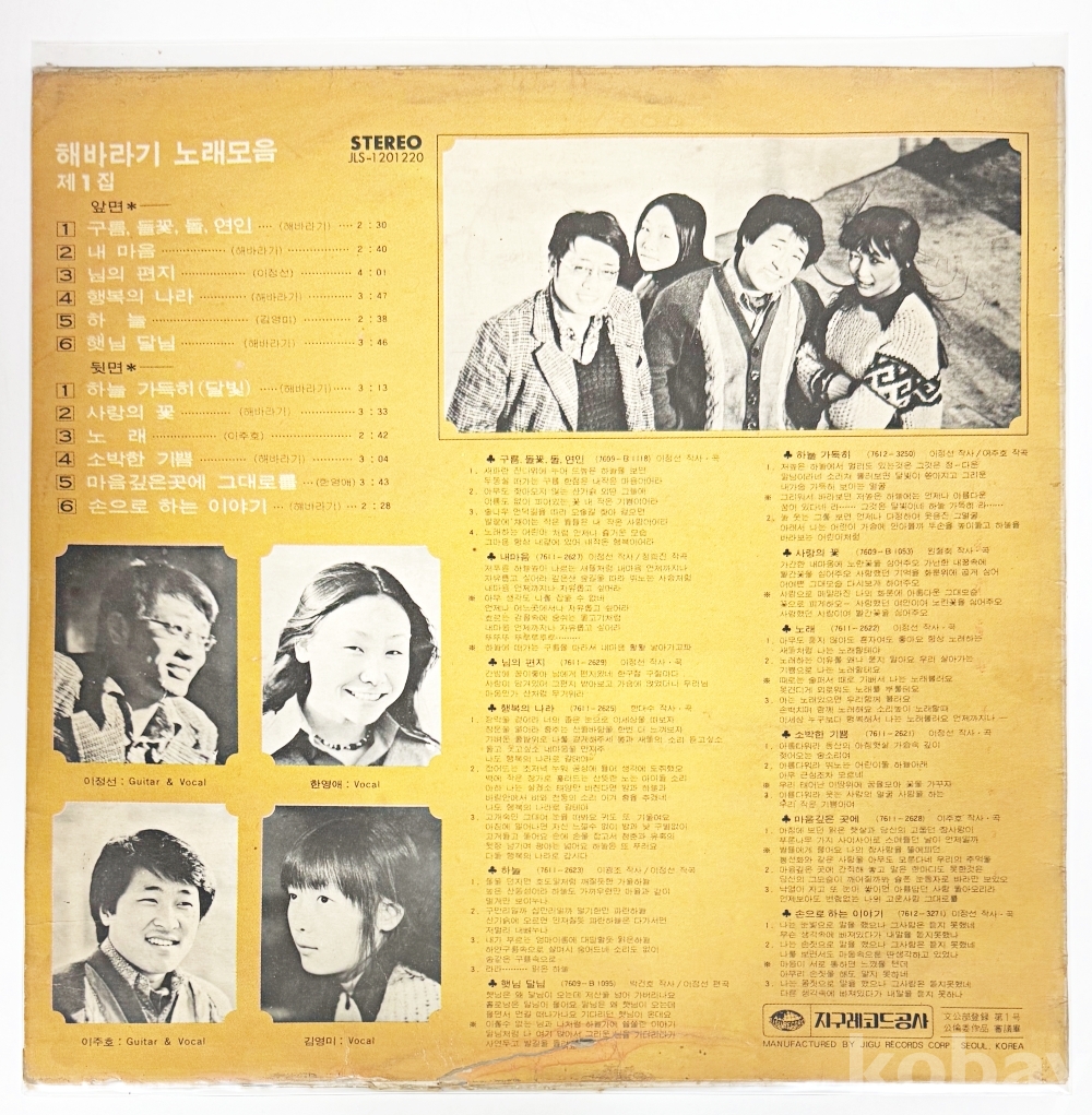 상품명 | 해바라기 노래모음 제1집 [ 구름, 들꽃, 돌, 연인 / 하늘 가득히 (달빛) ] | ||