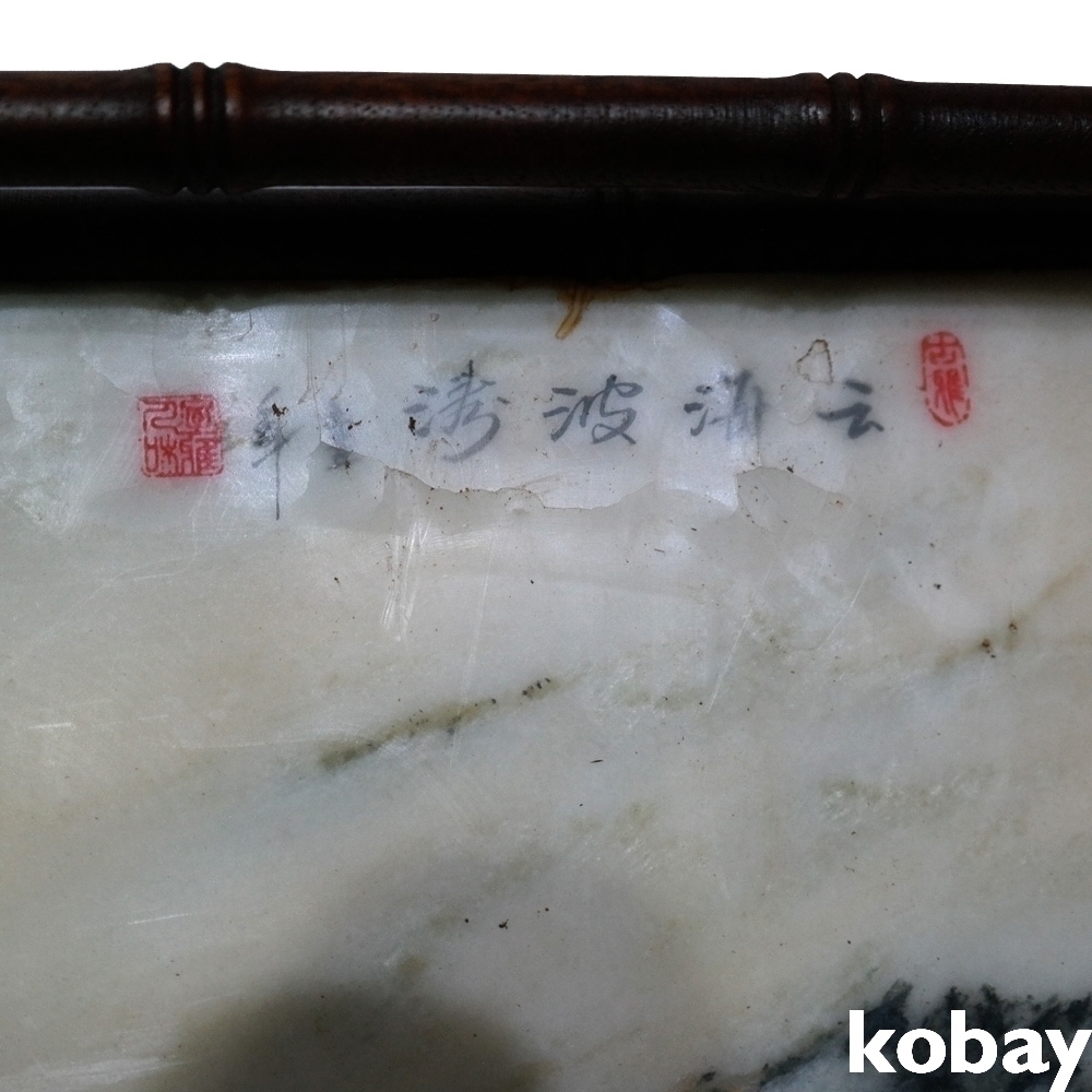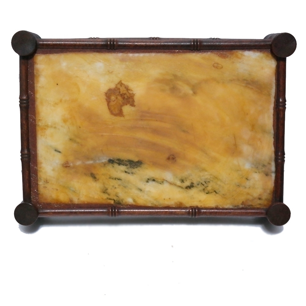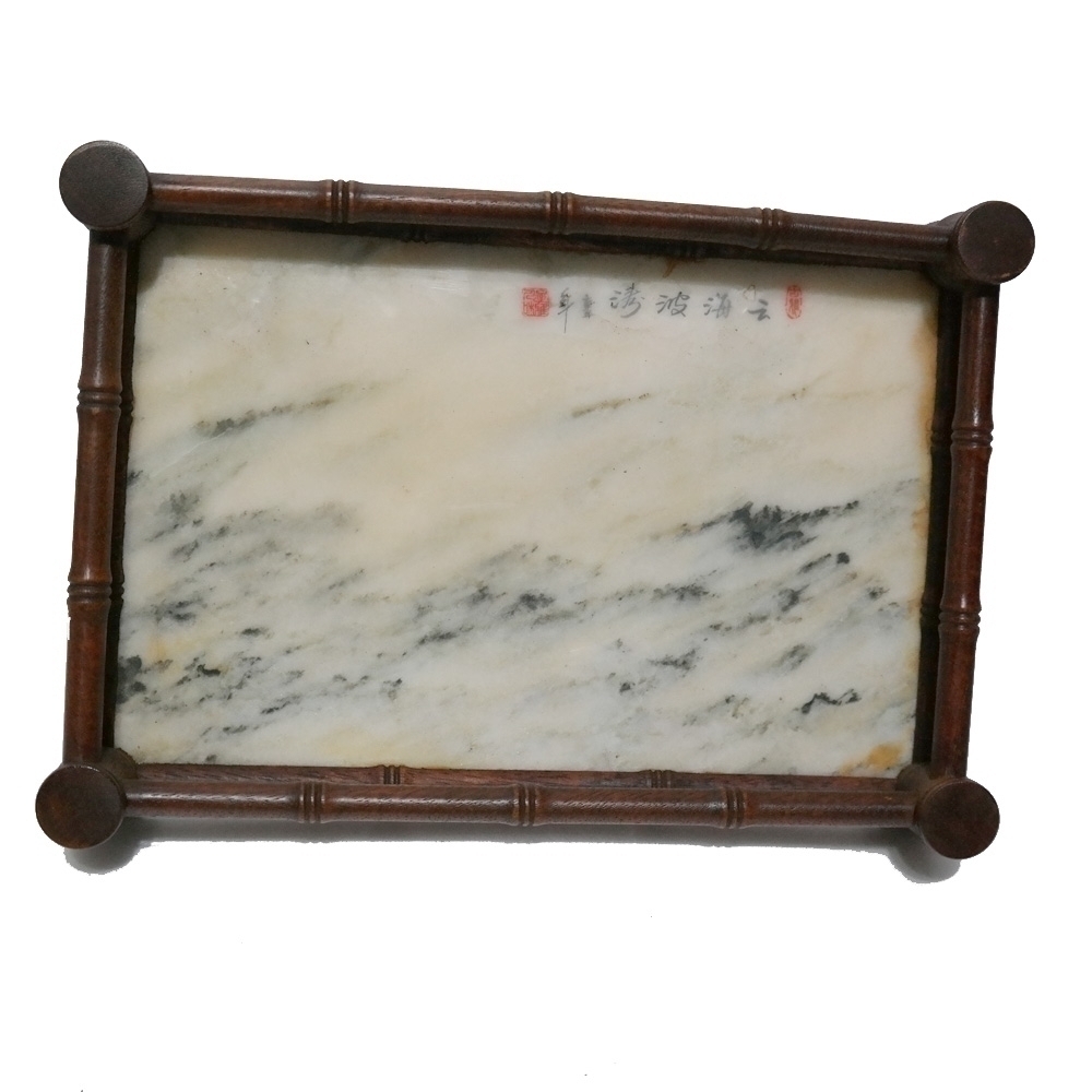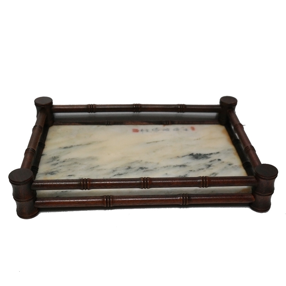 테두리는 대나무문양의 나무로 만들어진 골동품 재현작 쟁반 입니다.