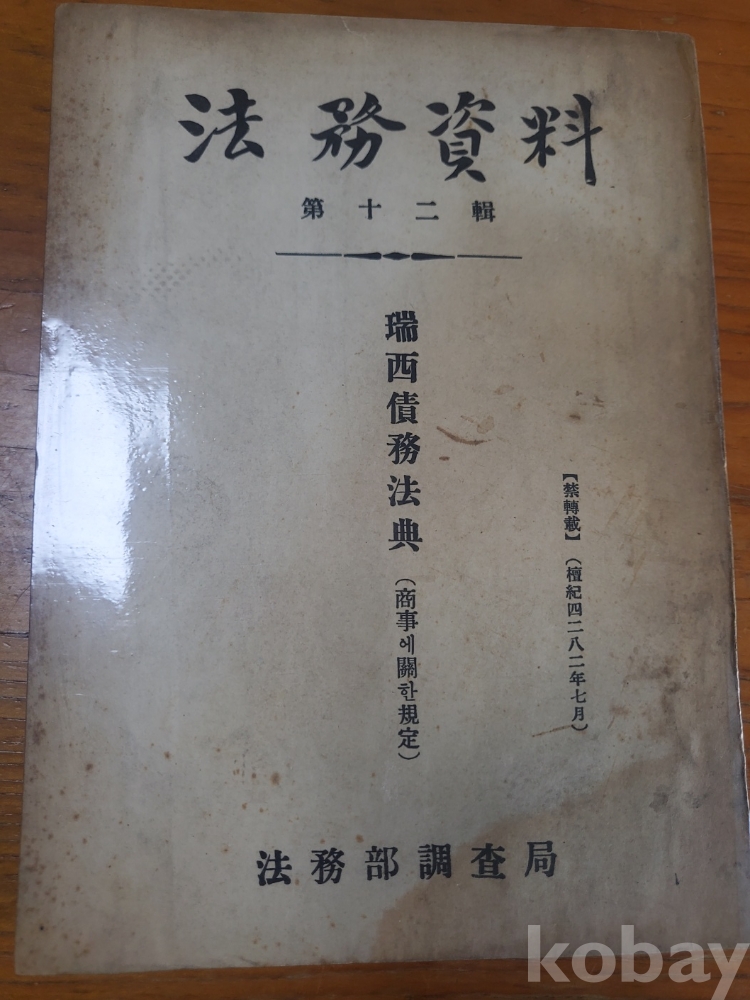 1. 법무자료 제12집 - 서서채무법전, 법무부조사국, 1949년, 252쪽, 상태 상, 사진 참조