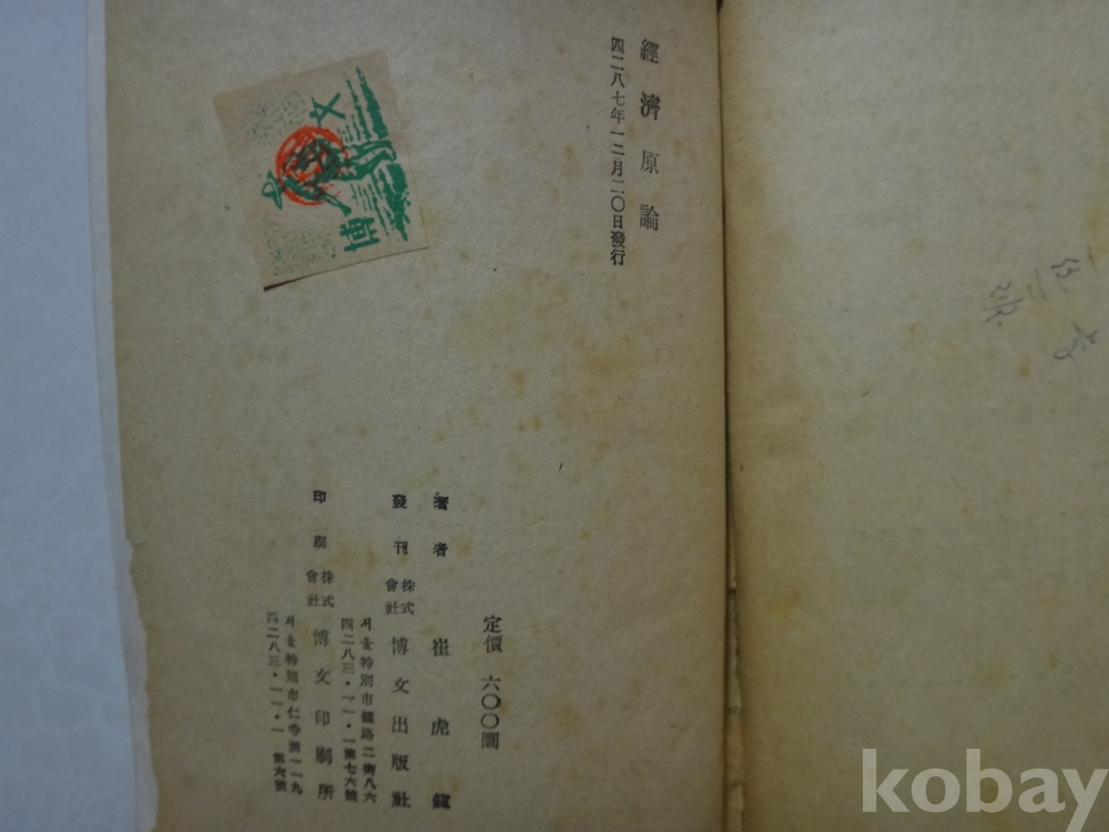 경제원론 (1954년, 초호진 저, 박문출판사)
