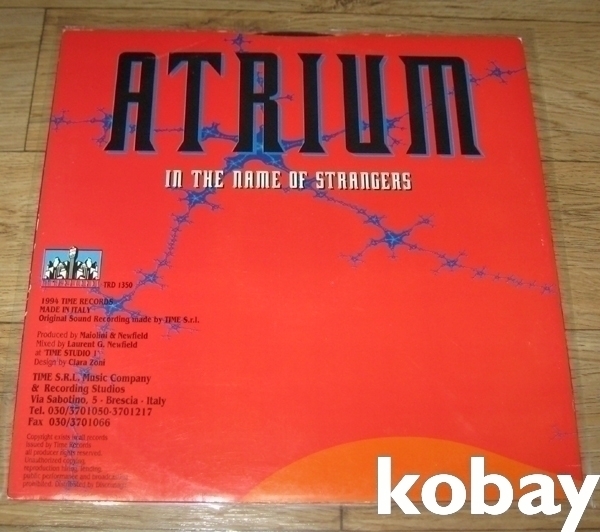 아트리움 Atrium – In The Name Of Strangers 12인치 싱글 엘피 LP입니다. (Eurobeat / Italy 음반 )