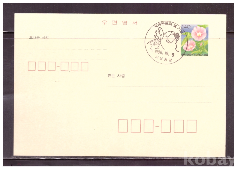 (기념일부인엽서) 1998.10.9 세계우표의날기념*세계의 우표수집 (서울중앙)
