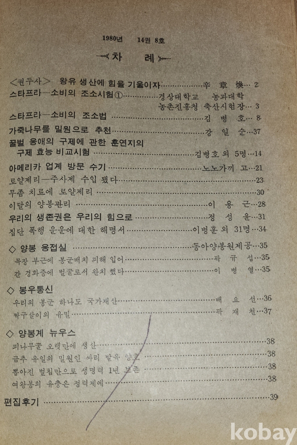 1980 년에 발행된 양봉계(養蜂界) 양봉계사 발행 8 월호입니다,
