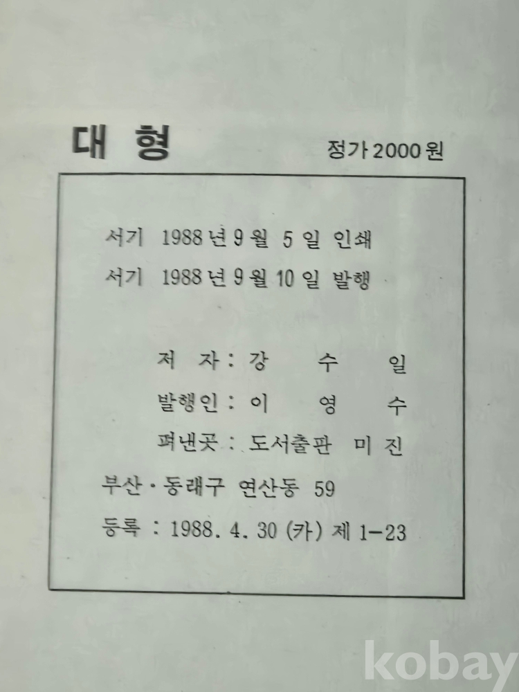 성인극화만화 ==강수일 == 대형 4책 일괄 == 1988년