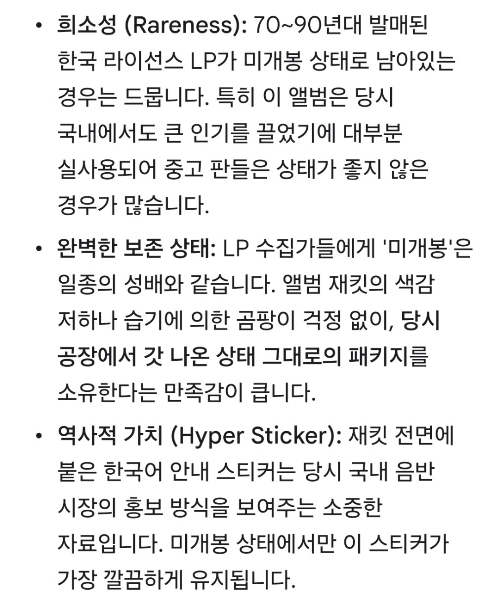 | 자켓상태 | SS : 미개봉, 손상 없음 | 음반상태 | SS : 미개봉 상태 | 발매정보 | 초반 | 가사지여부 | 무 |