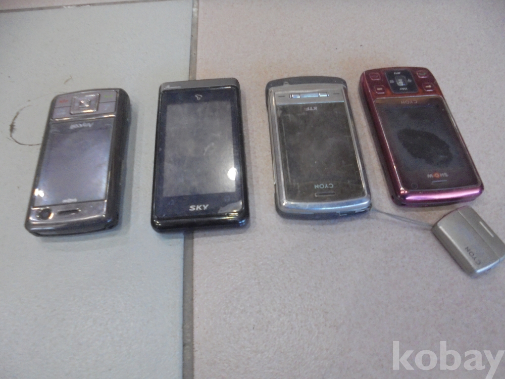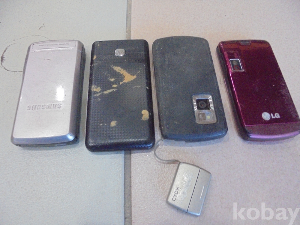 붉은색핸드폰 엘지이고 케티 에스케이 삼성의 여러가지의 오래된 핸드폰 4점 엘지 가로세로높이 10 x 5 x 1.2 cm 외사진참조