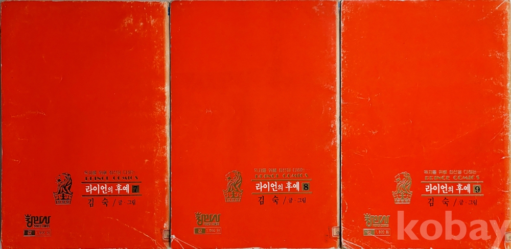 물 품 명 | 김숙 / 라이언의 후예 (1~9)완결 총9권 / 프린스코믹스 / 1992년 초판 / 창만사 |