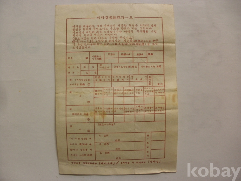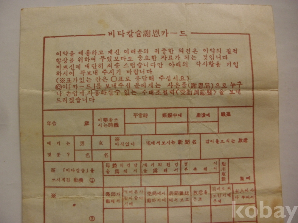 비타 카슘 사은 카드 - 우편엽서 (삼일제약 학술부)