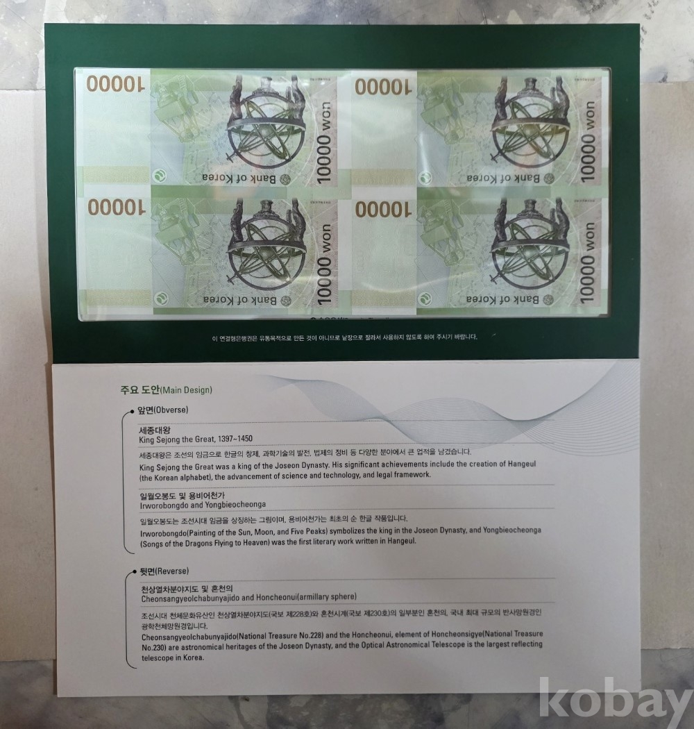 -대한민국 6차 만원 4면부 연결권 지폐첩 입니다.