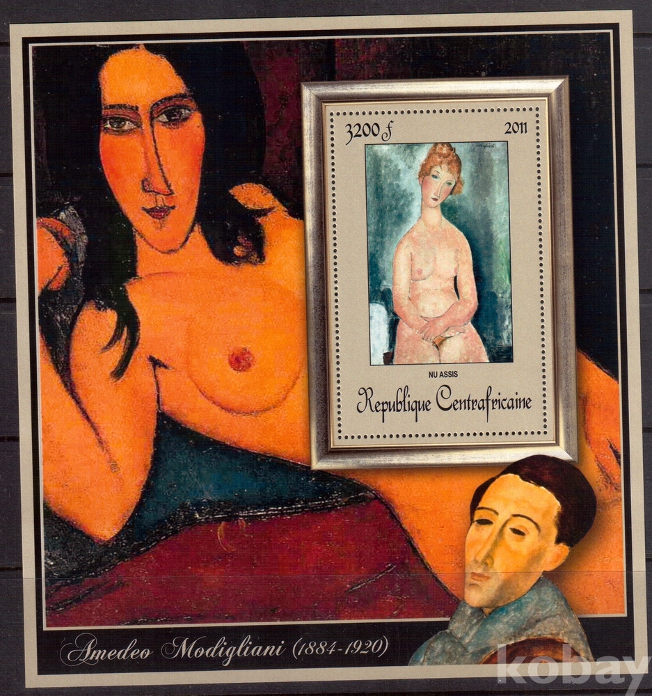 (누드명화) 중앙아프리카 2011 Amedeo Modigliani 앉아있는 나체의 남자 deluxe sheet MNH