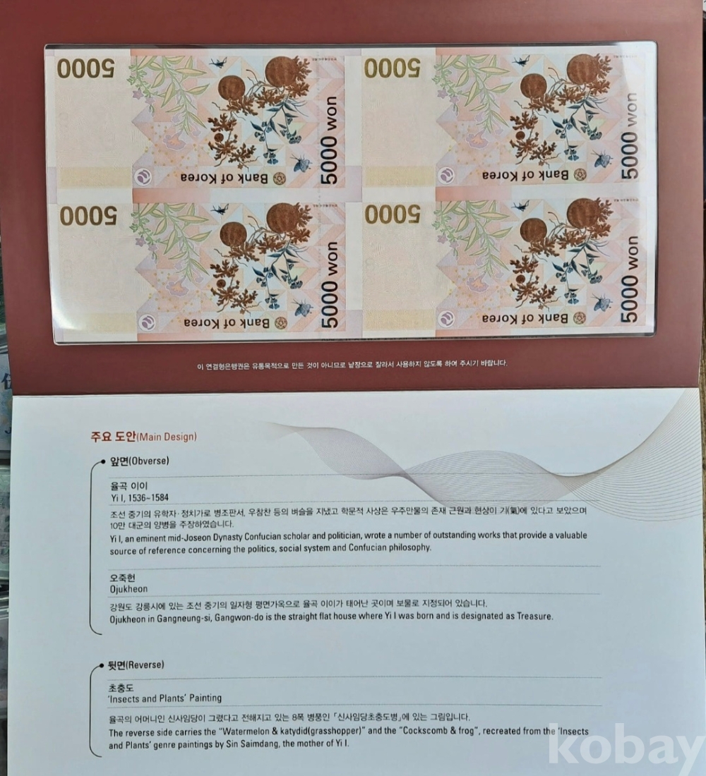 한국은행 오천원권 4면부 연결형 은행권입니다. 액면가는 2만원입니다.