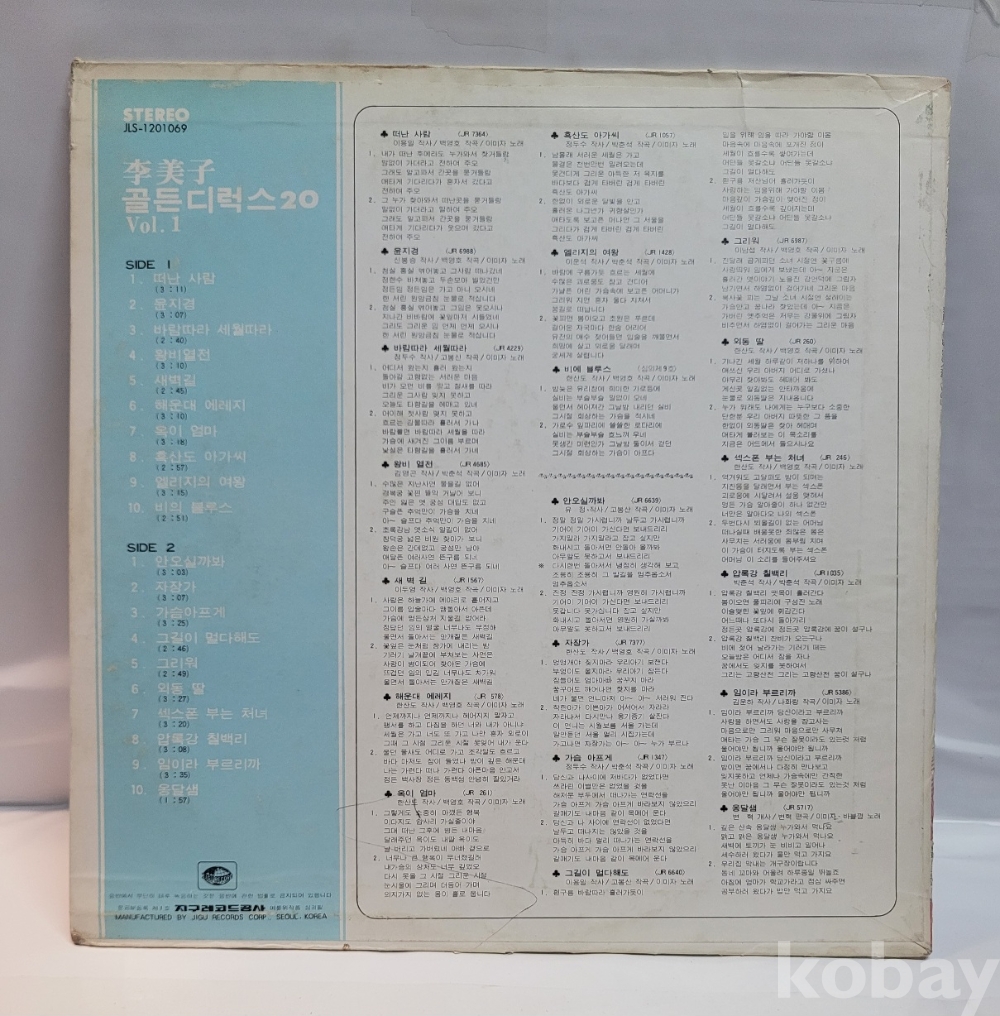| 자켓상태 | VG : 주름, 접힘, 모서리 찢김 다수 | 음반상태 | VG : 생활 기스 다수, 가벼운 노이즈 존재 | 발매정보 | 초반 | 가사지여부 | 무 |