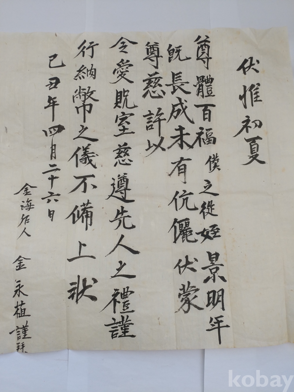 * 신랑의 혼주가 혼인을 허락해주심에 감사의 표시로 예단과 함께 보내는 서신(서간)