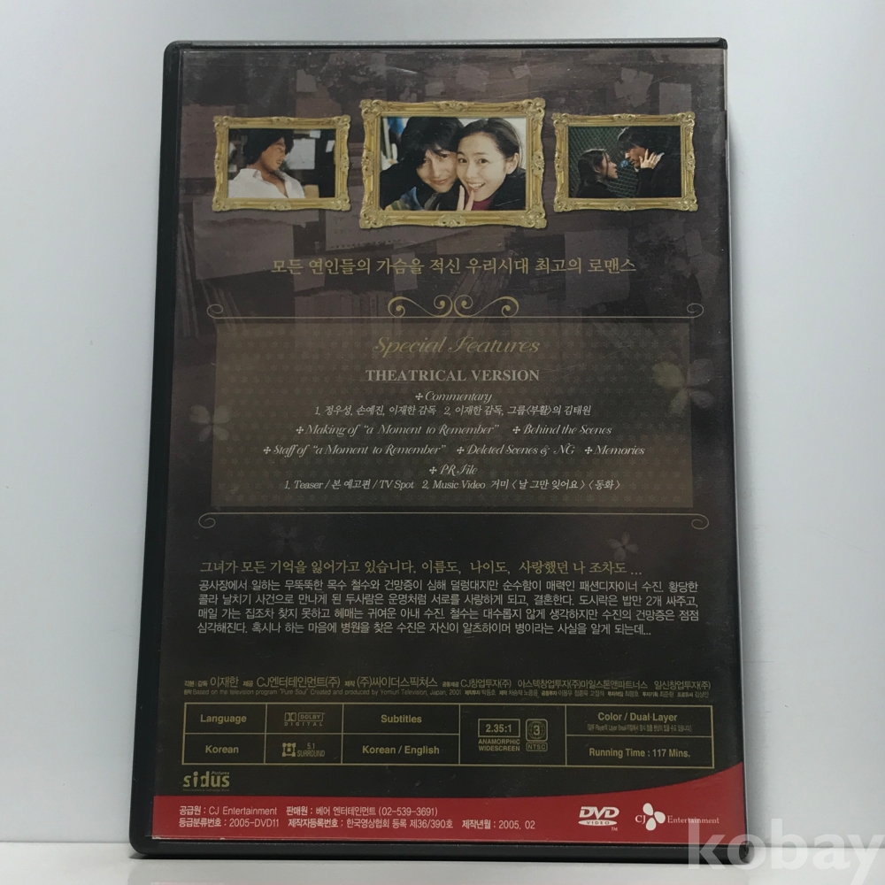 DVD 160-43 내 머리속의 지우개 - THEATRICAL VERSION . 자켓 : 실사 디스크 컨디션 : 개봉 잔기스조금