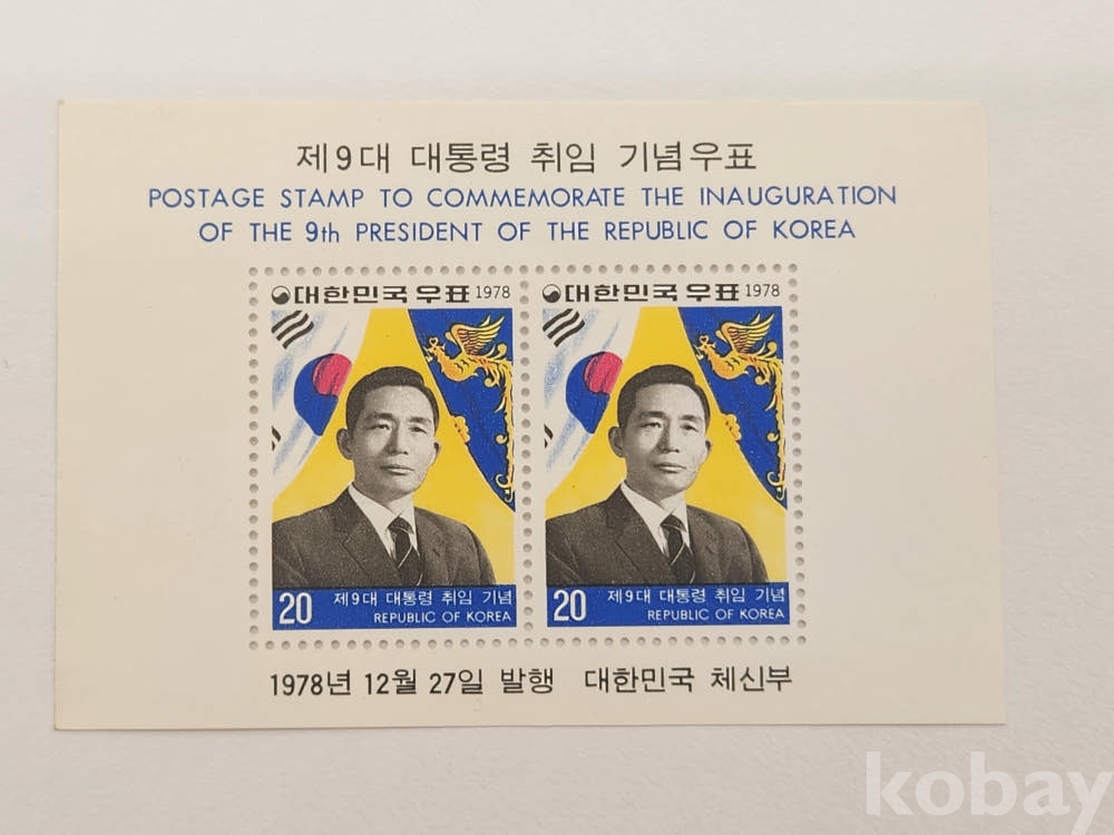 한국우표 C835/ 제9대 대통령 취임 기념우표 (박정희 대통령)1978년 시트 (변새있음/모서리 상태확인B급))