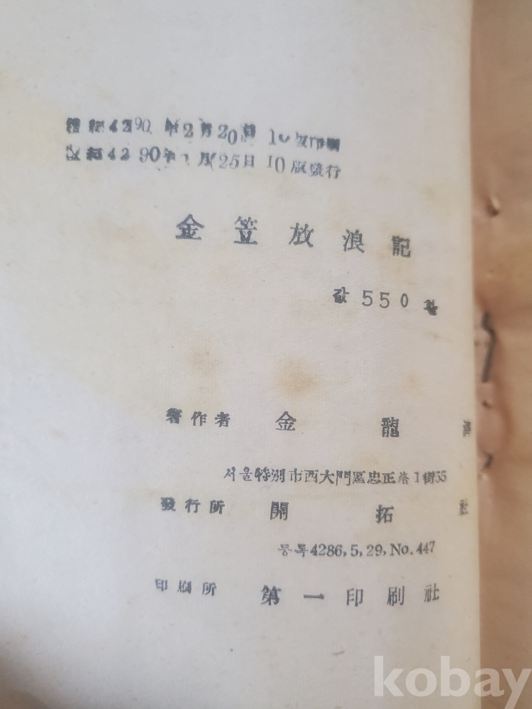 1. 김립방랑기, 김용제, 개척사, 1957년, 344쪽, 상태 상, 사진 참조