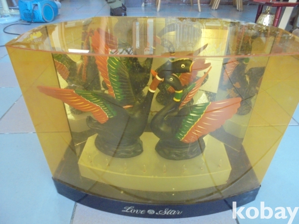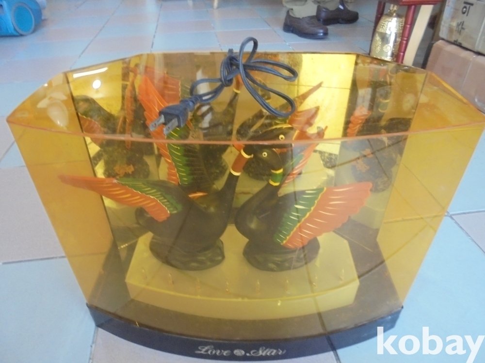 백조의 꿈을실현하기위하여 나무와 당채로 비상하는 모습으로 너무잘만들어 조명투영상자에넣은 고급당채 백조와 투명상자