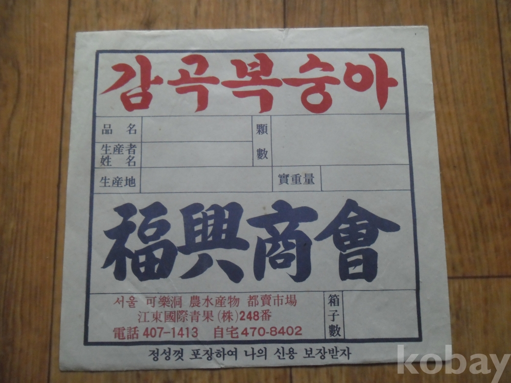 가락동 청과시장 복흥상회 상표: 감곡 복숭아