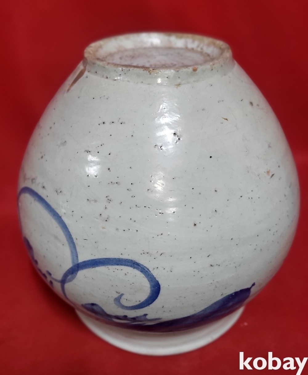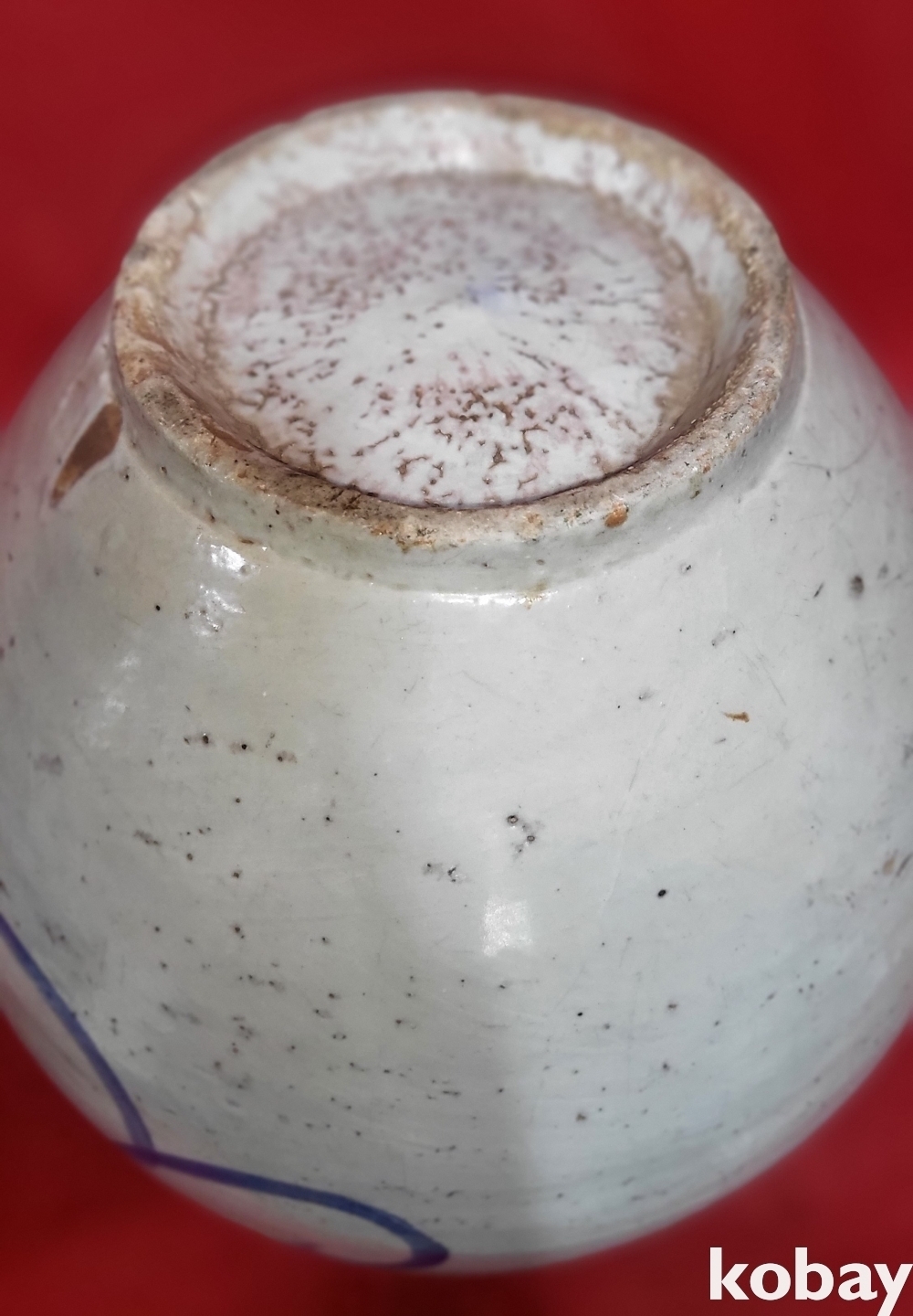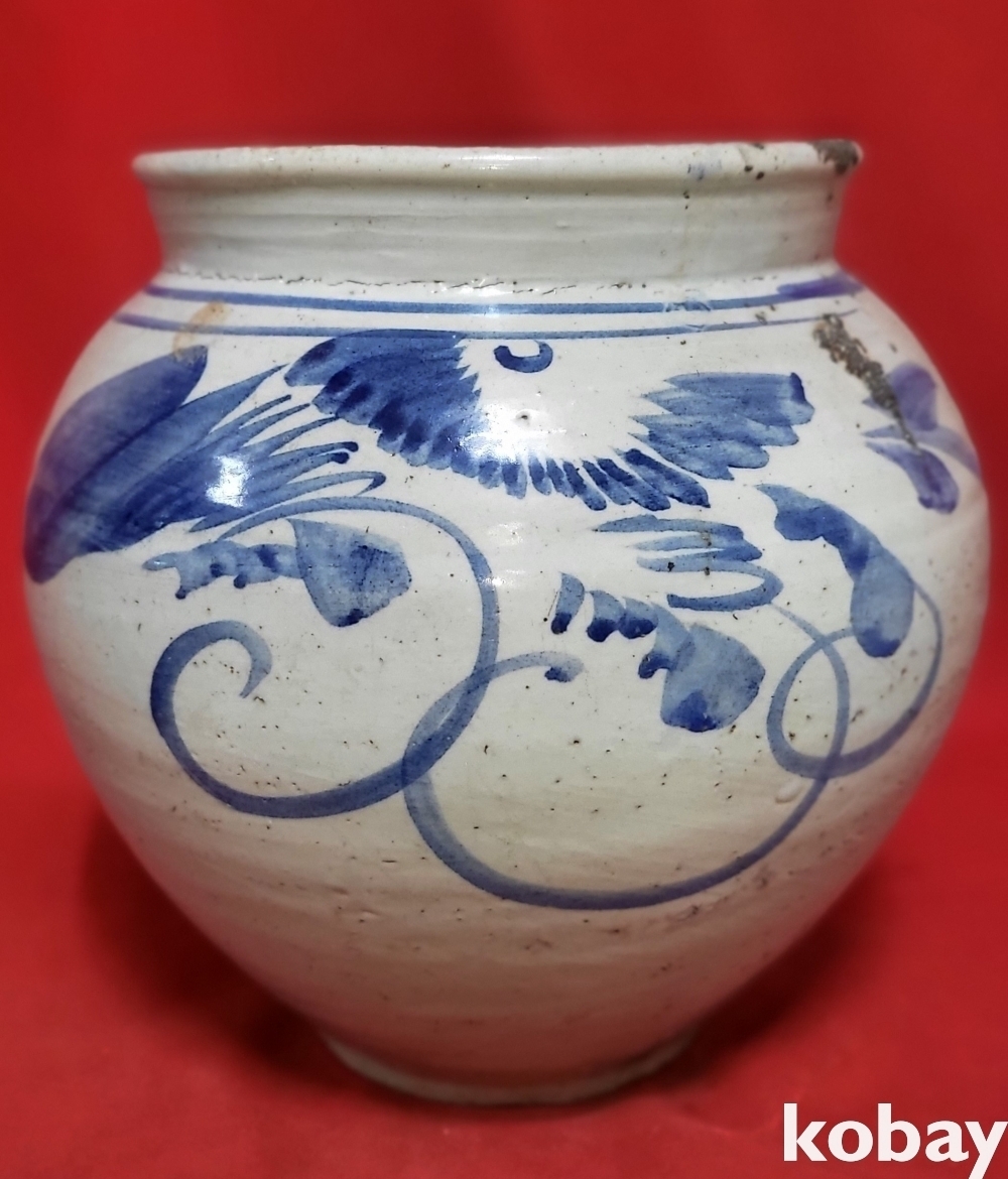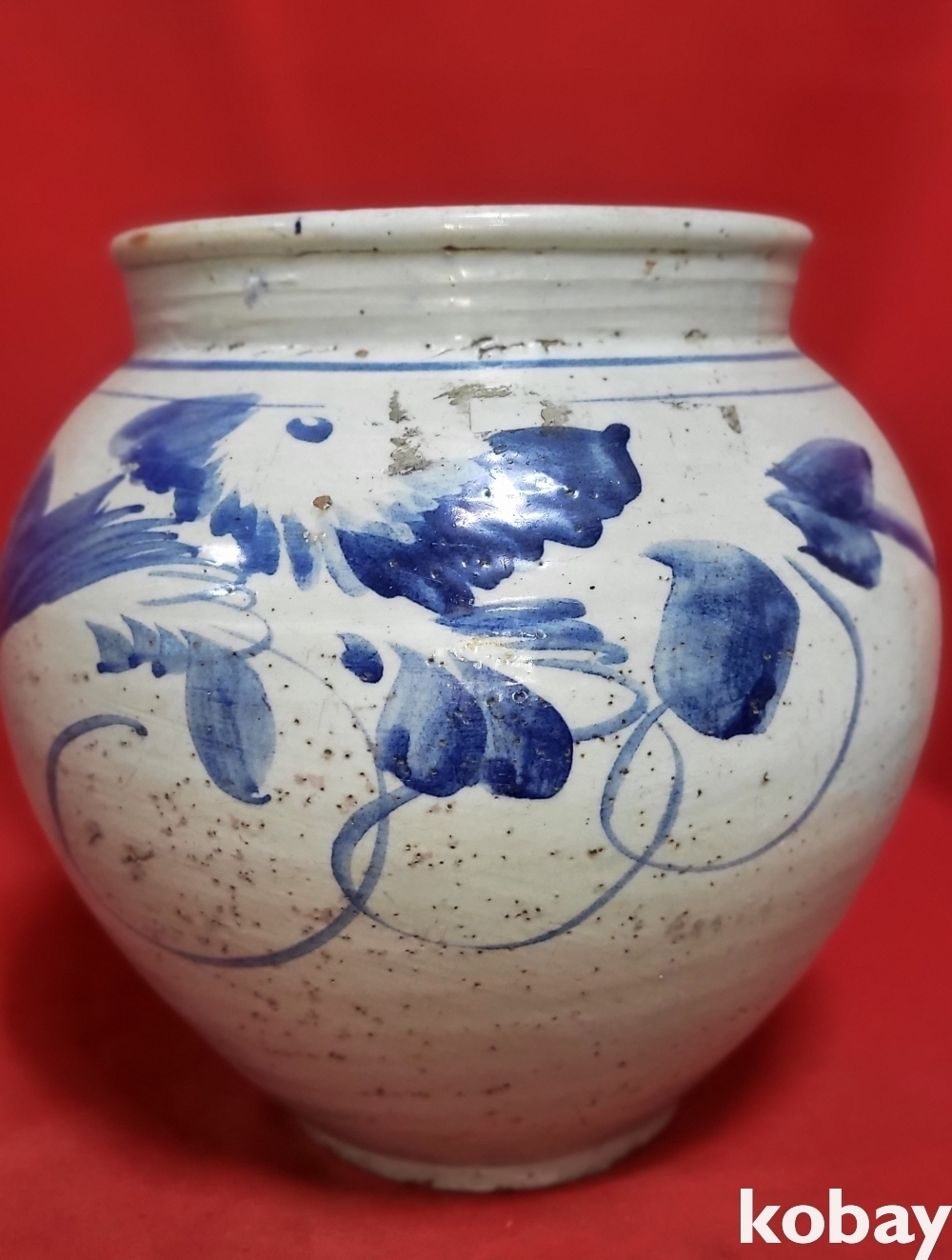 조선시대 백자 초화문 항입니다,가마에서 발생한 이물질이 붙어 있습니다,