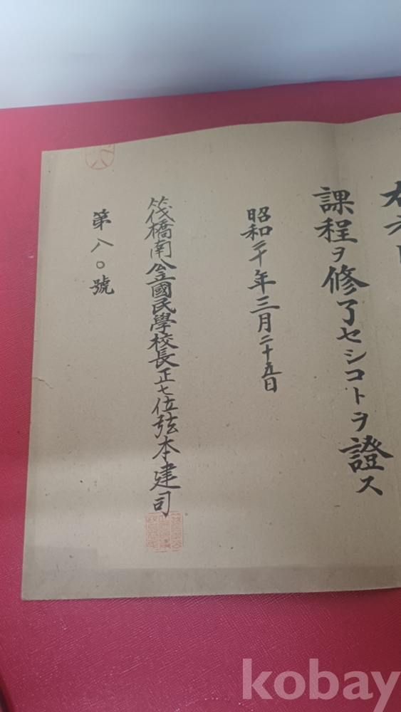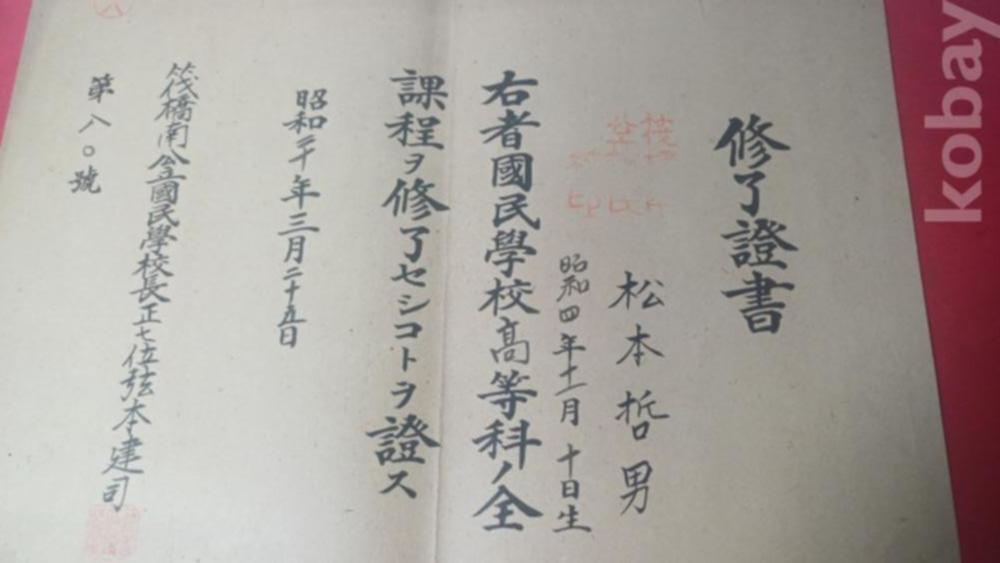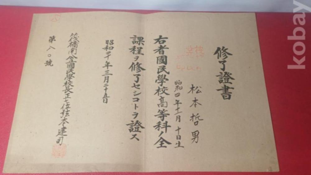 소화20년 일제강점기 국민학교 졸업 수료증서