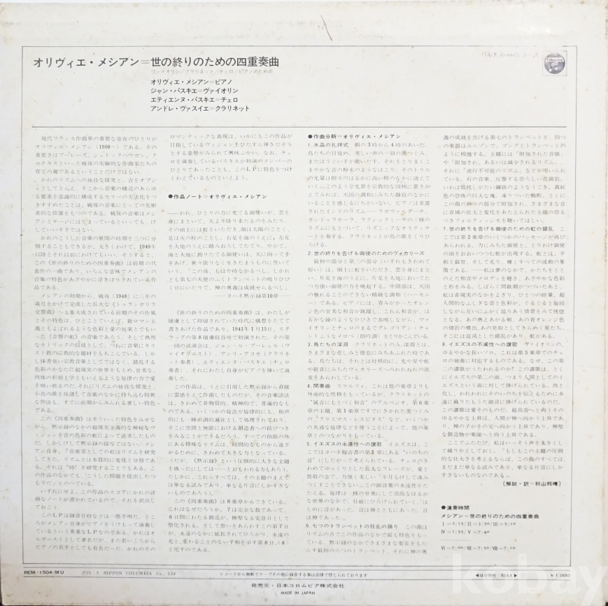 Oliver Messiaen, Jean Pasquier, Etienne Pasquier, André Vacellier – Quatuor Pour La Fin Du Temps