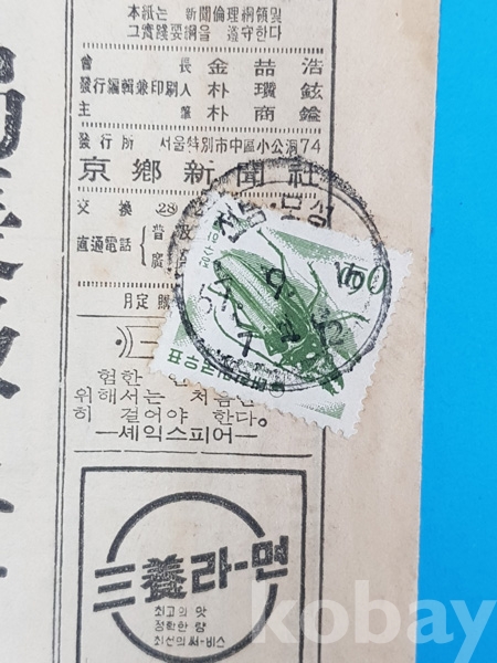 제2차국백 0.60 장수하늘소 첩부 1967년9월16일자 경향신문*전남보성,67.9.16 일부인/