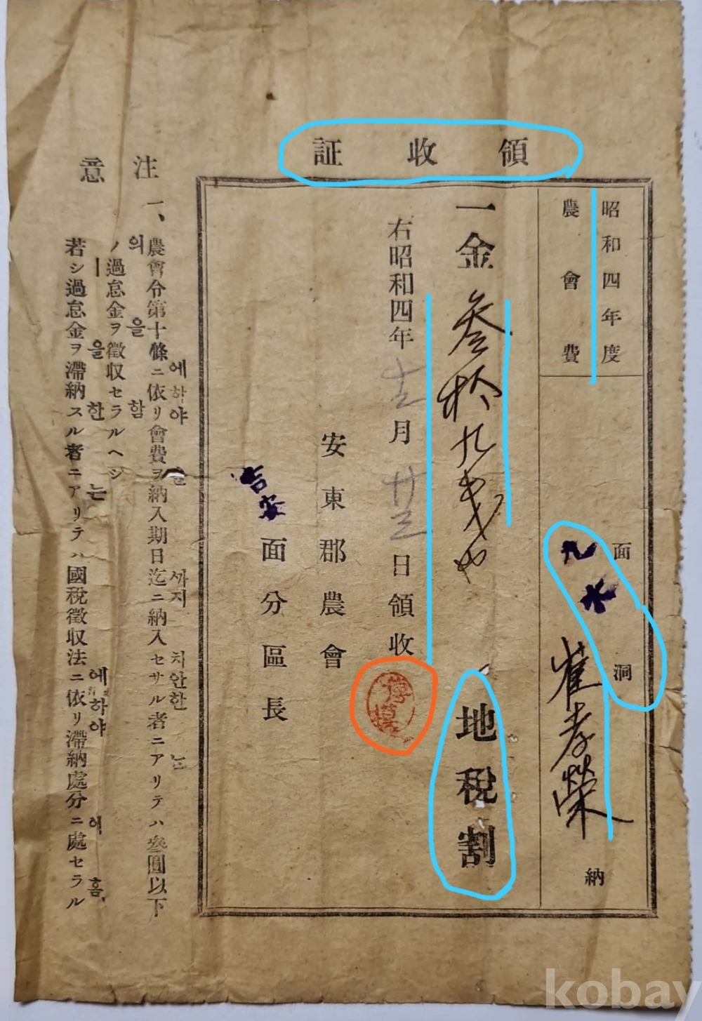 소화 4년도(1930) 제2기분 지세(地稅) 2원 81전(錢) 등을 납부하고