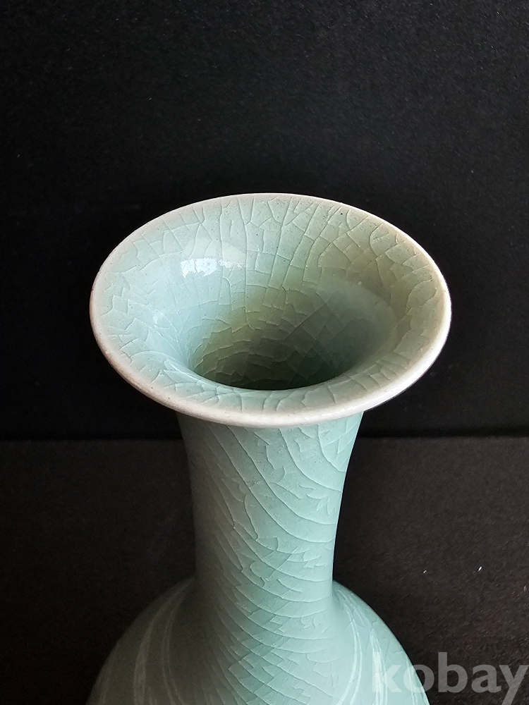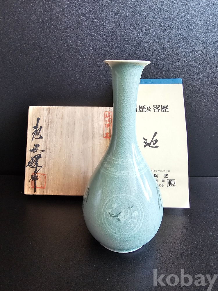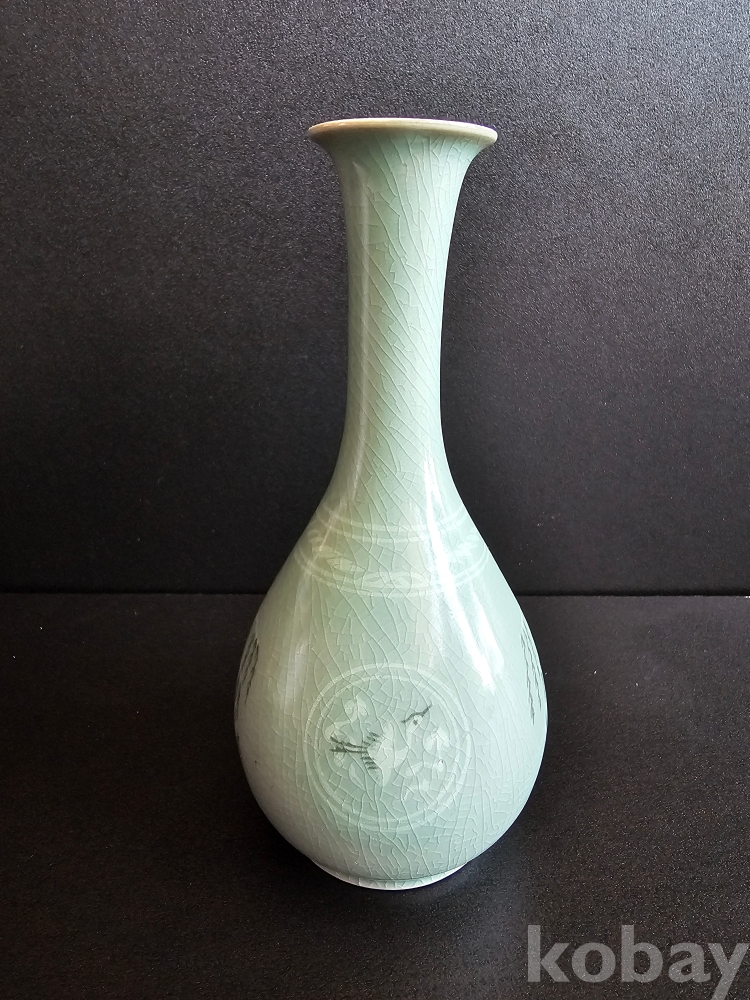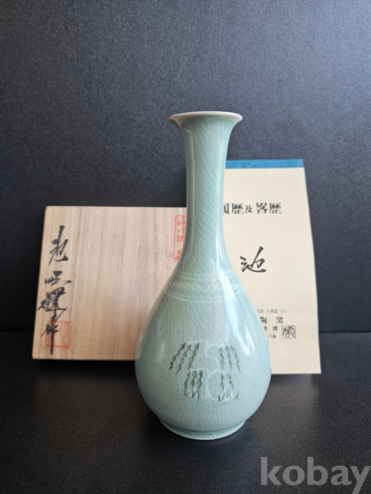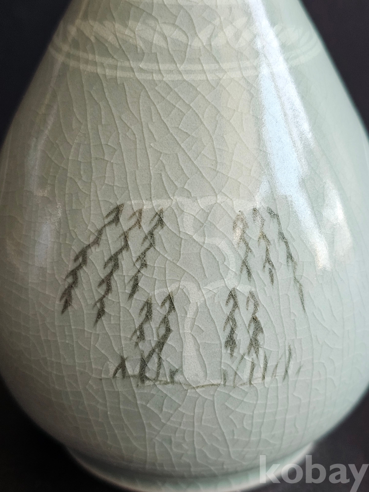 명칭 : 인간문화재 도암 지순탁 청자상감포류운학문병