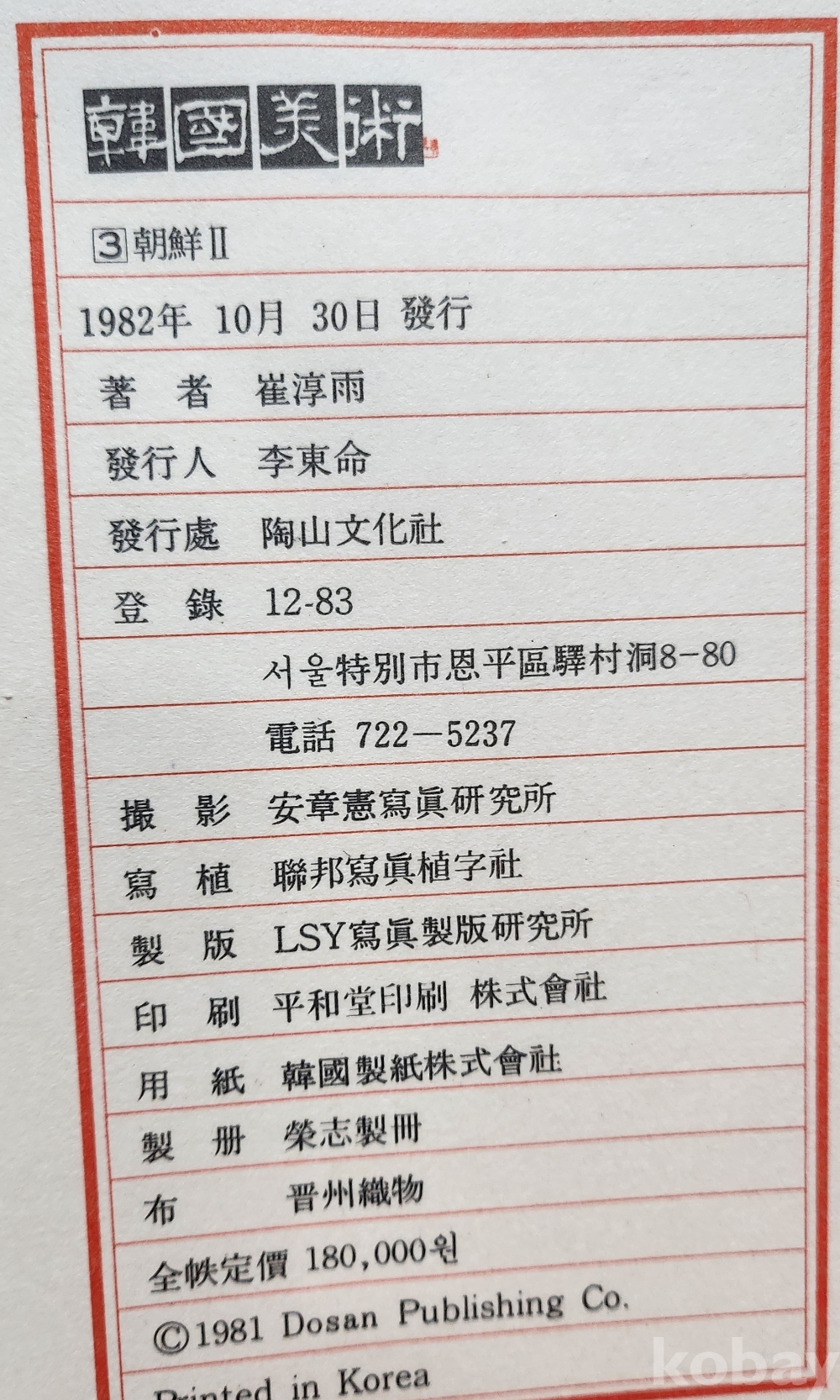 1982년 발행된 한국미술 도감으로 조선시대 작품과 설명이 수록된 귀한 도감입니다,