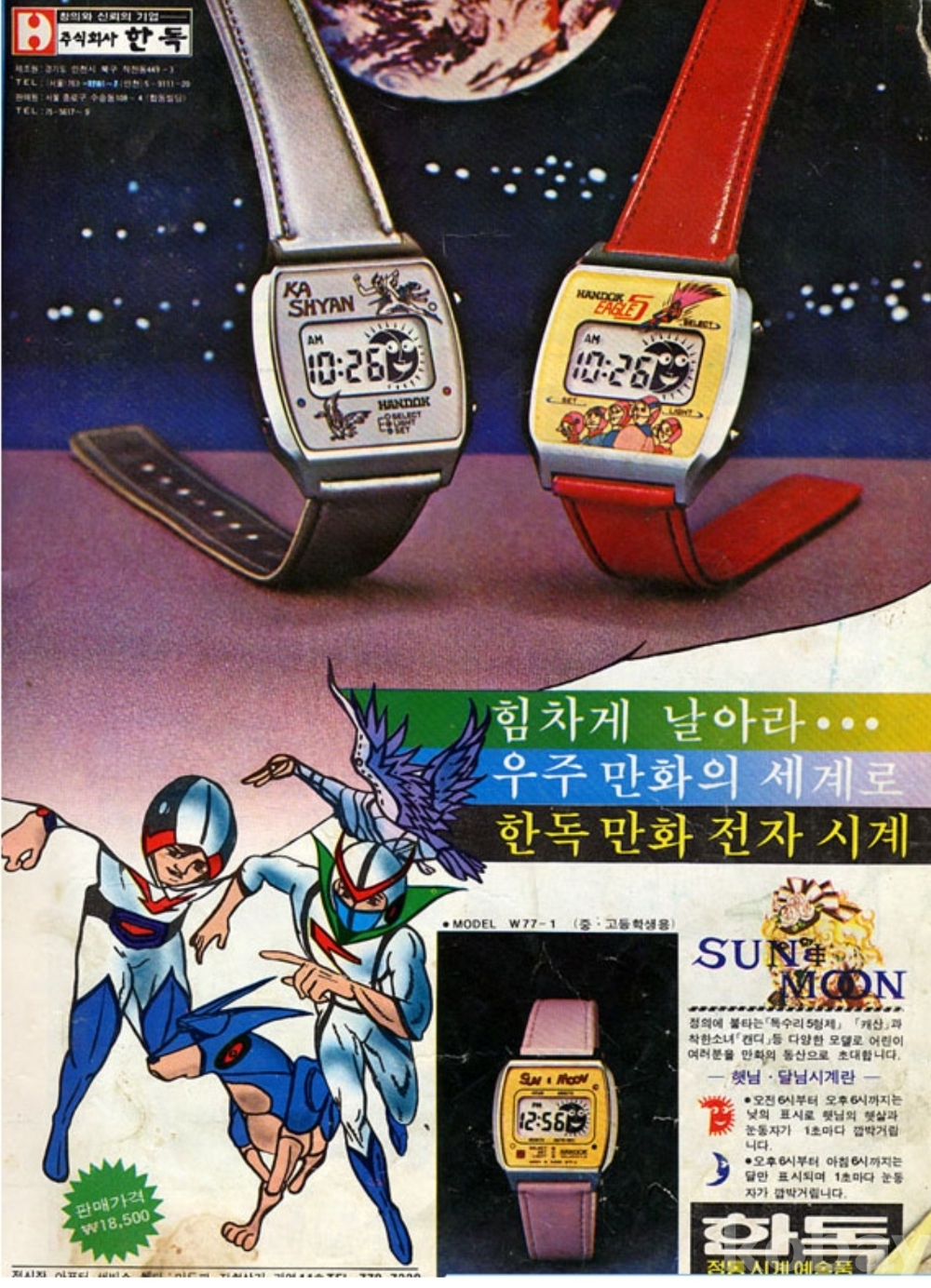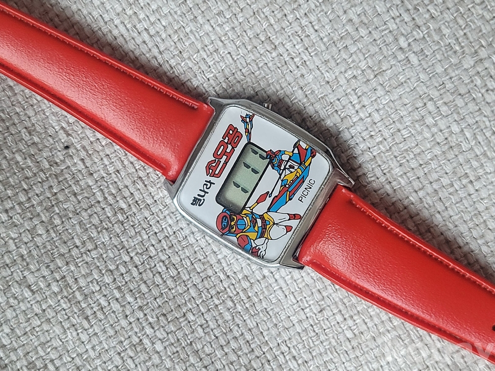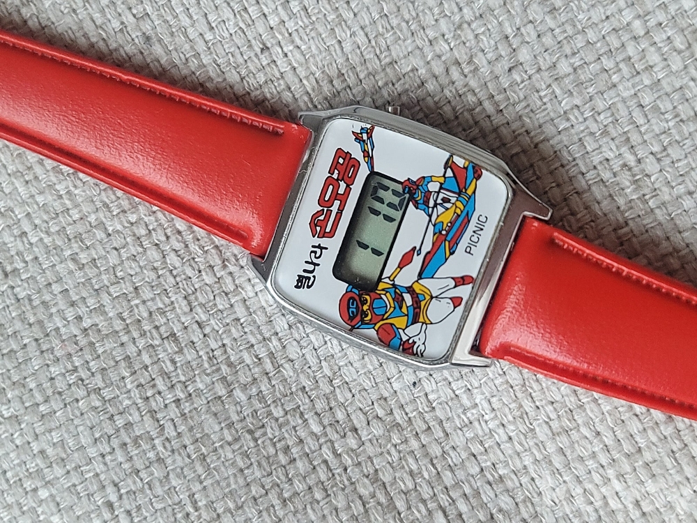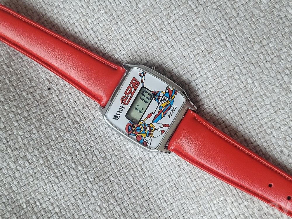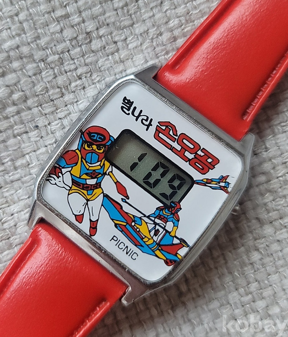 1980년대 인기 TV 만화시리즈인 별나라 손오공 캐릭터 시계입니다