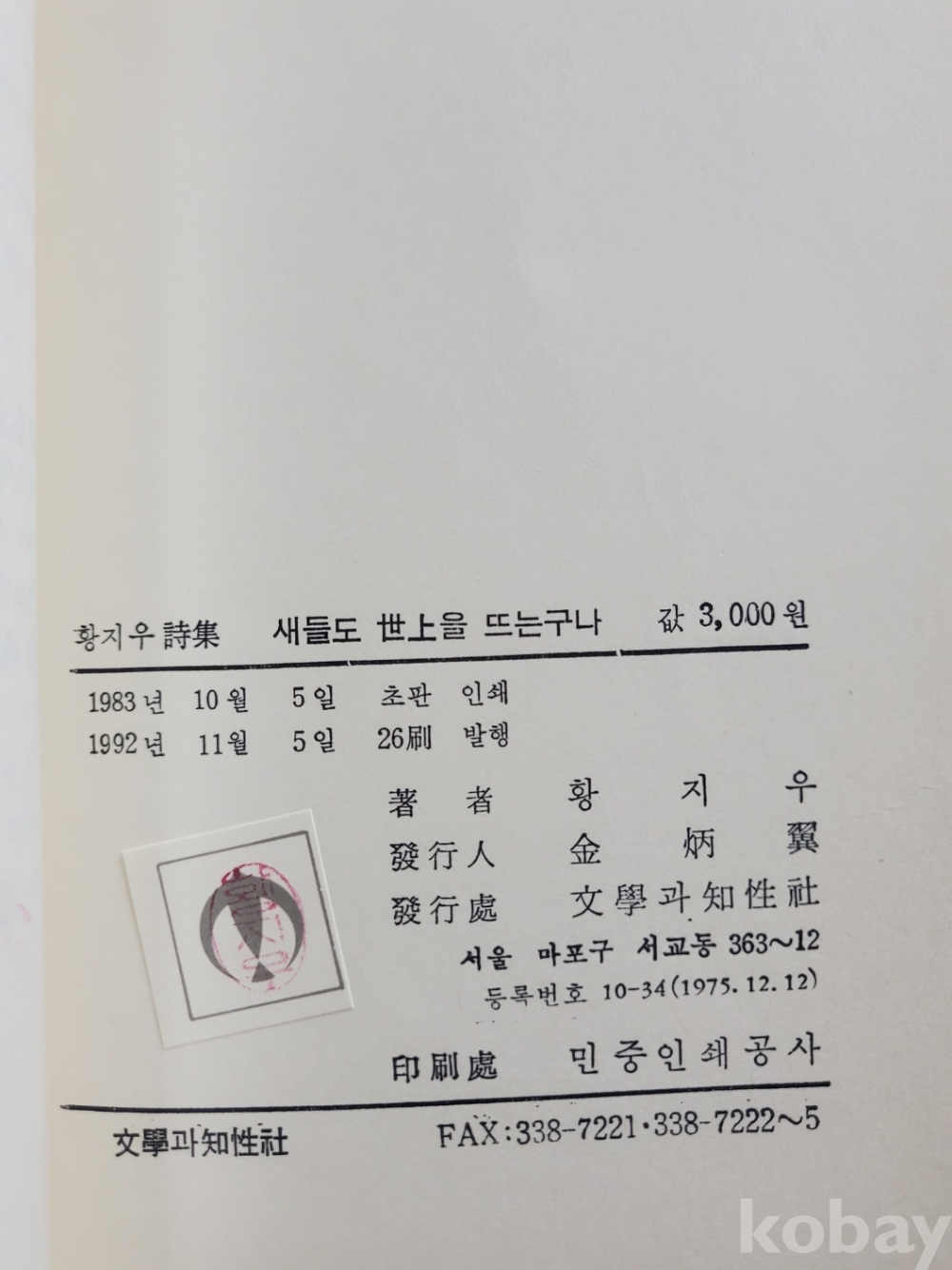 1. 새들도 세상을 뜨는구나, 황지우, 문학과지성사, 1992년, 127쪽, 상태 상, 사진 참조