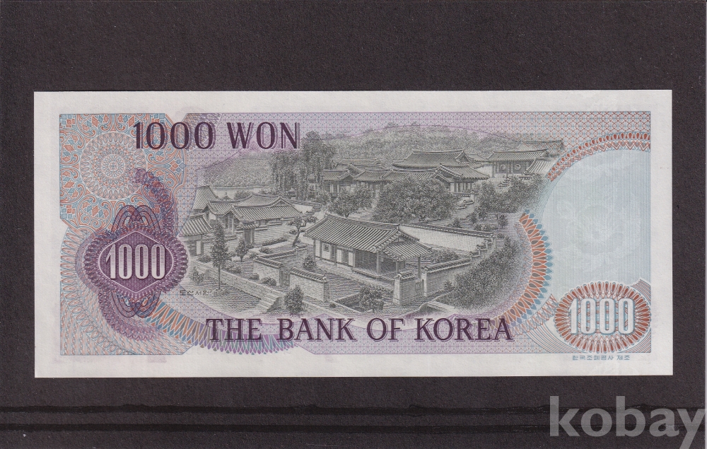 - 1975년 1차 천원 라바사 4635608 미사용 지폐