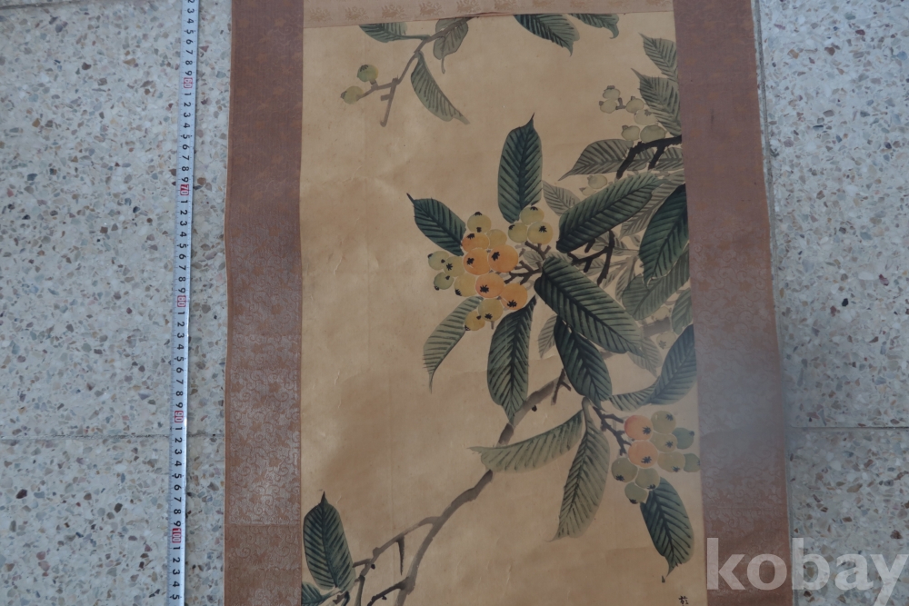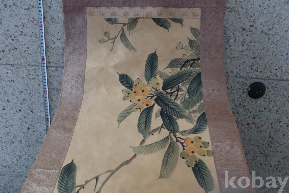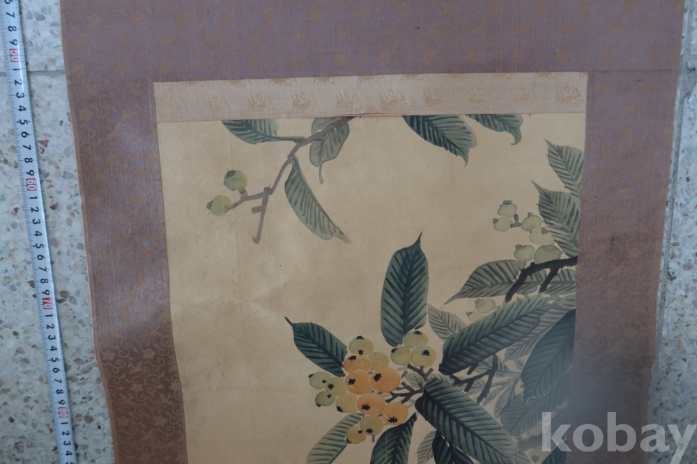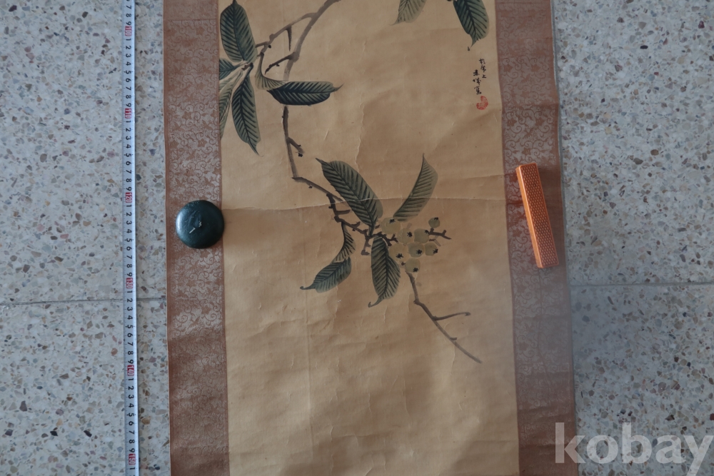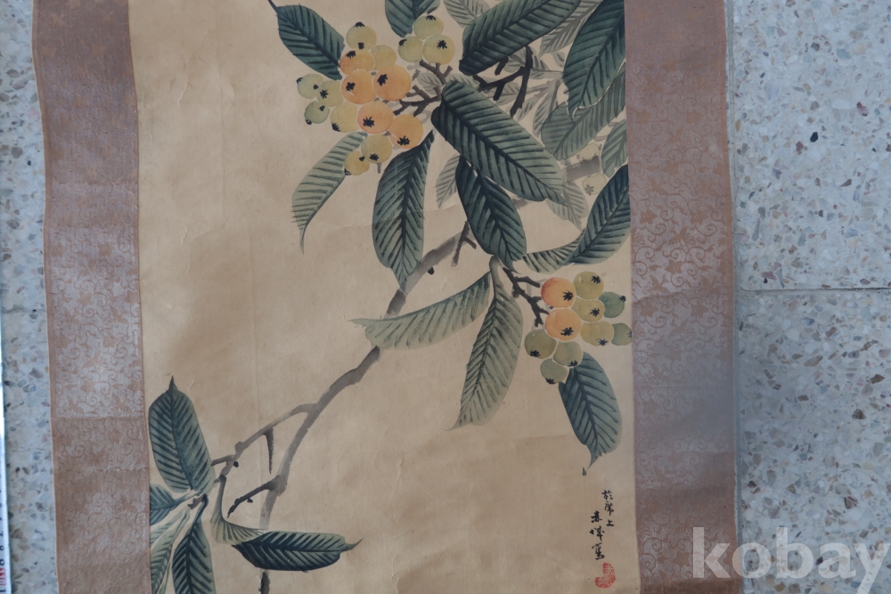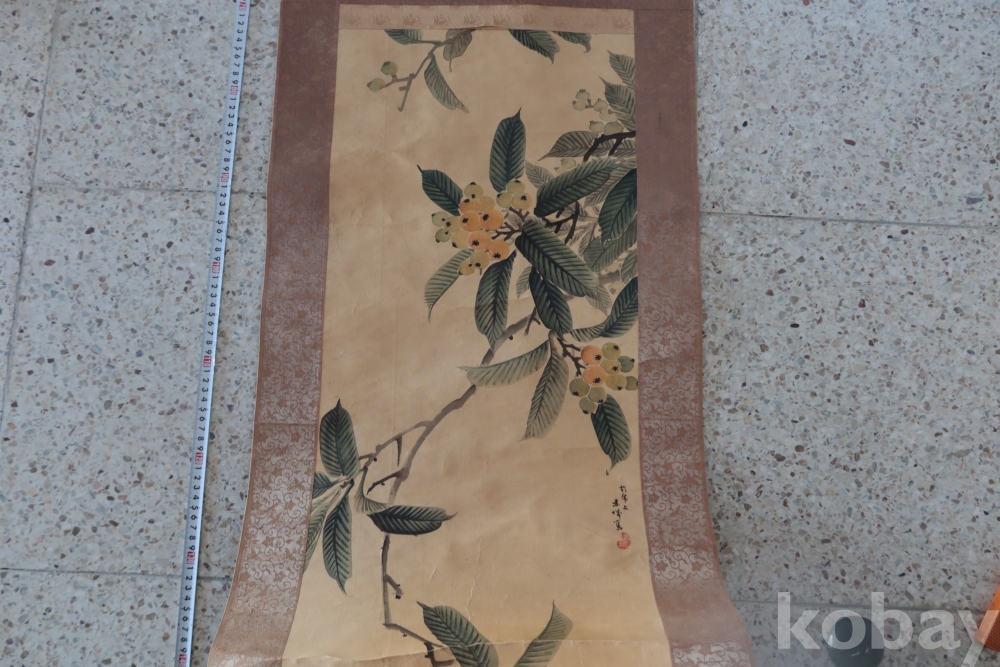 멋진 그림을 가진 비파?나무 임니다 화가의 혼을 가진 명화 이며 두 축은 깨진 부분 마개 분실이 보임니다 족자는 세월의 흔적이 보임니다 1930 전후의 명화 임니다