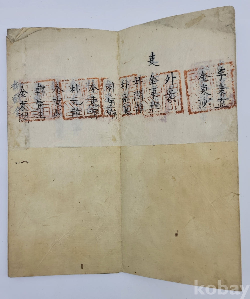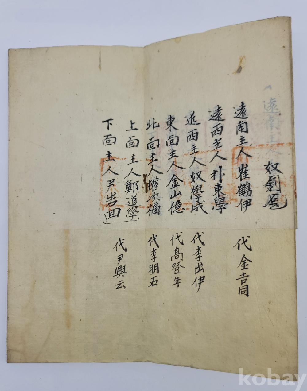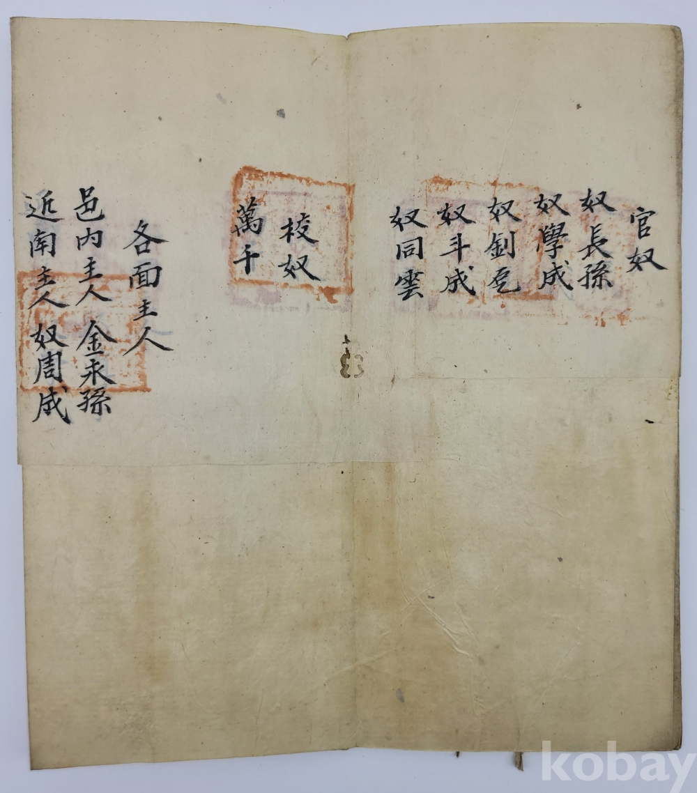 본문에는 ‘호장(戶長), 서기(書記), 이방, 관노(官奴), 교노(校奴), 각면주인(各面主人)’의 성명이 차례대로 쓰여 있다.