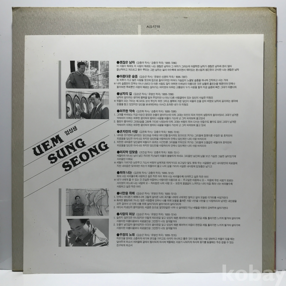 LP 83,820-8 엄성생 - 남자의 길 _ 자켓 EX 알판 EX+ 92 년 국내반