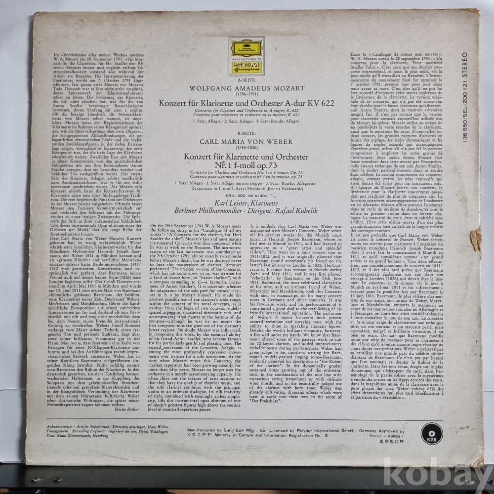 모짜르트 클라리넷 협주곡 A장조 K622, f-moll op.73