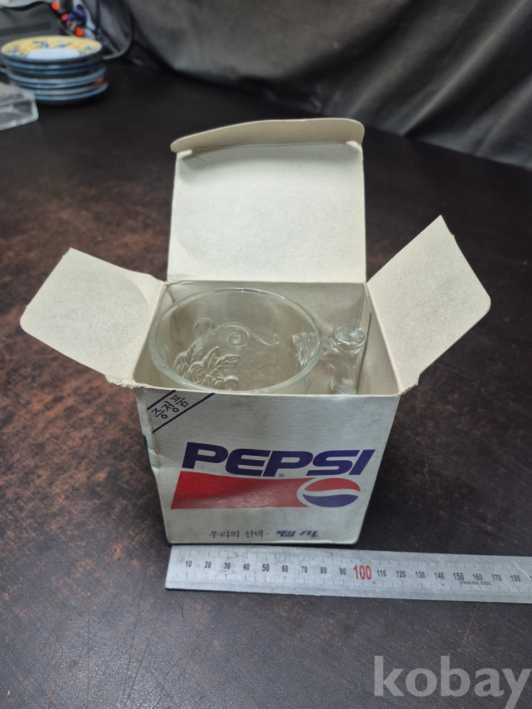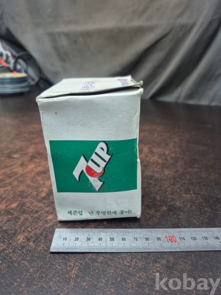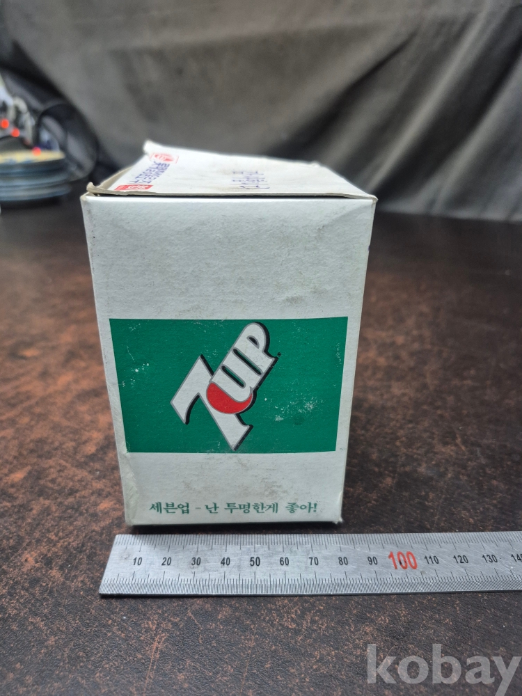 1980년대 롯데 칠성 음료 칠성사이다 세븐업 증정용 유리컵 박스품 미사용품 10*8*12