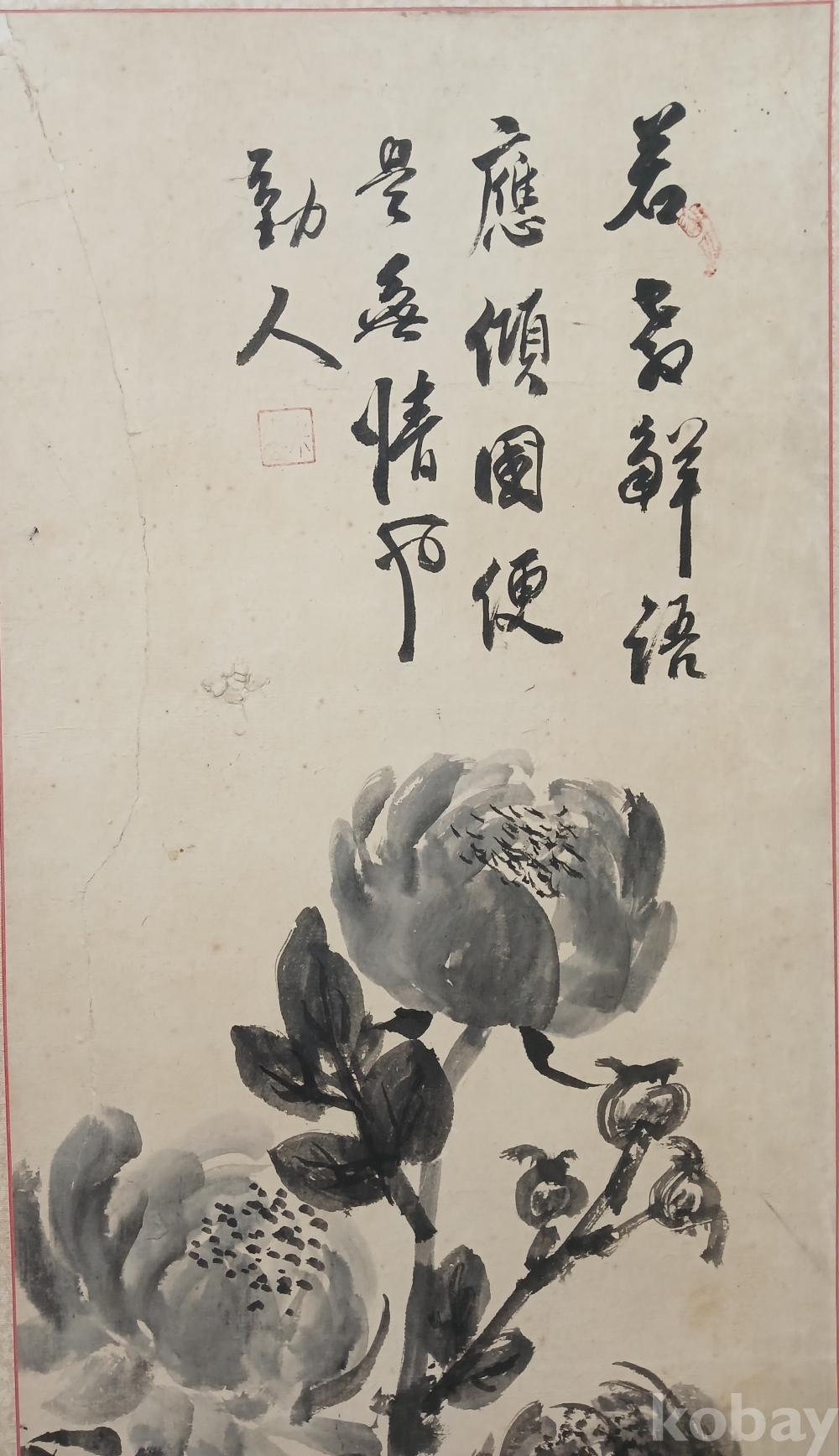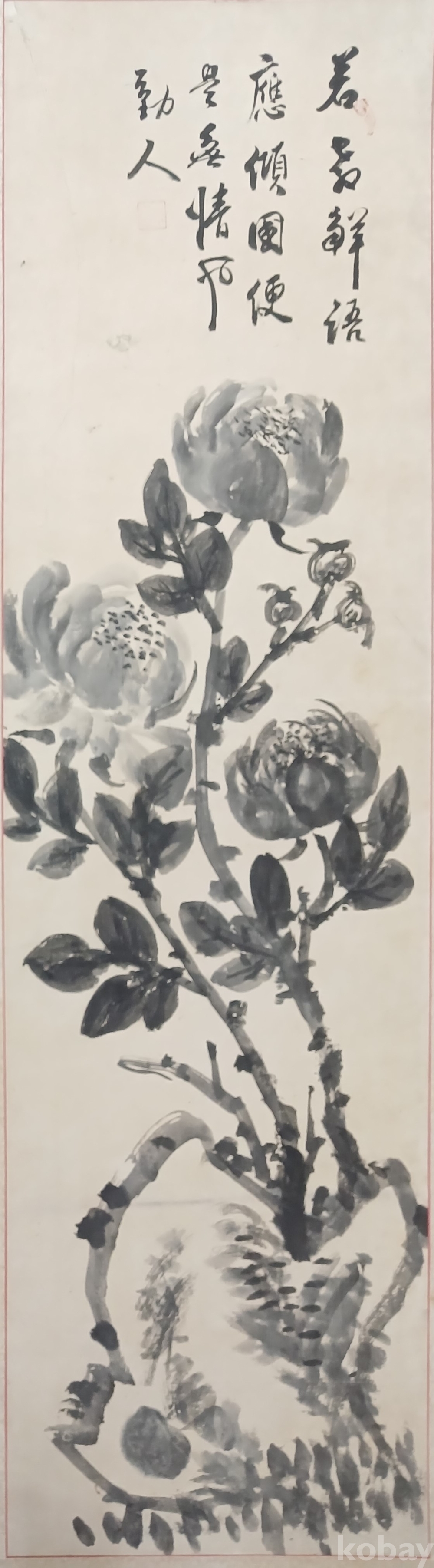 운림산방 2대주인 미산 허형(1862 ~1938)의 괴석에 묵모란도