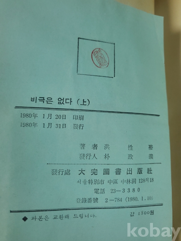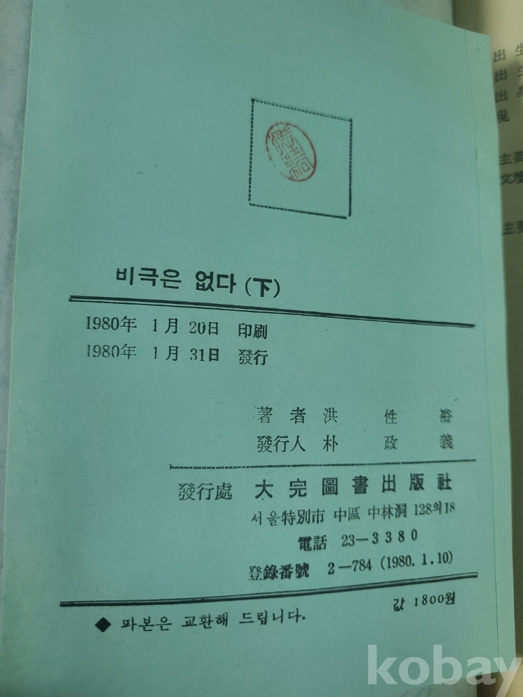 1. 비극은 없다 상하(2권), 홍성유, 대완도서출판사, 1980년, 593쪽, 상태 상, 사진 참조