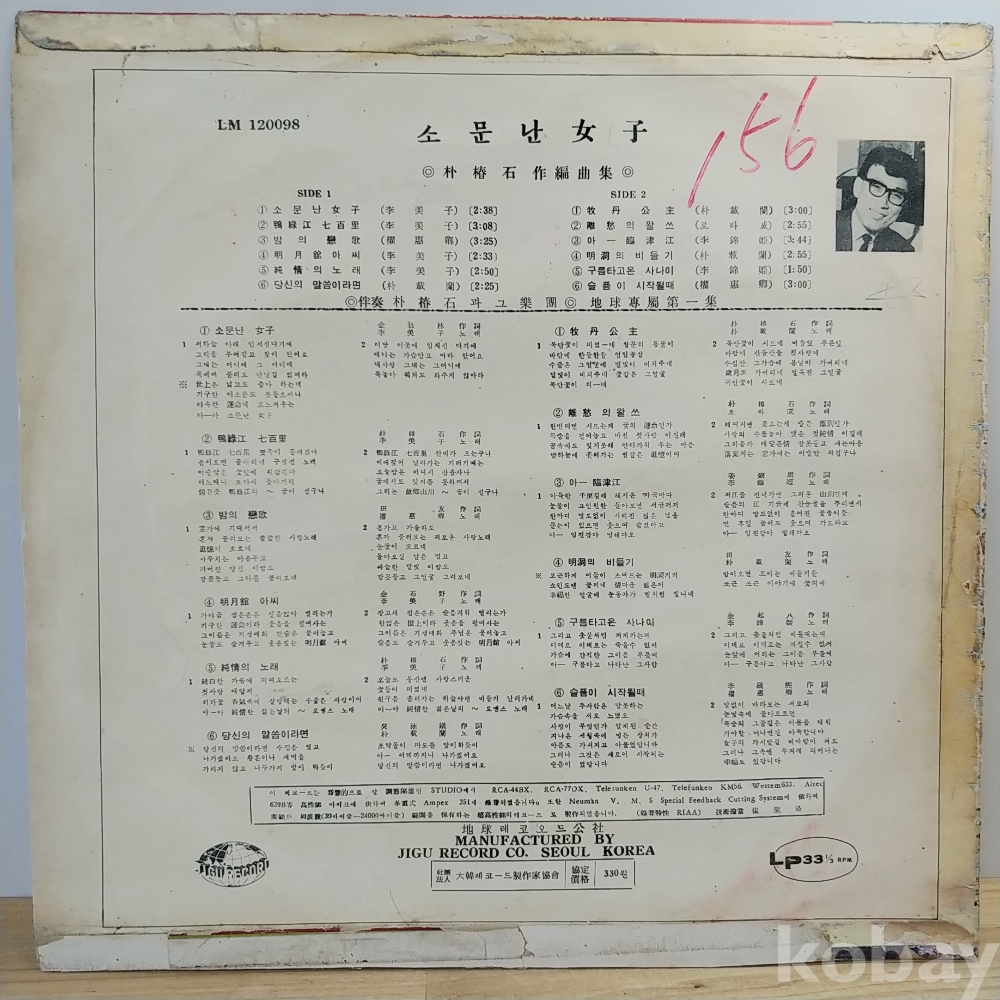 | 자켓상태 | VG : 주름, 접힘, 모서리 찢김 다수 | 음반상태 | VG : 생활 기스 다수, 가벼운 노이즈 존재 | 발매정보 | 초반 | 가사지여부 | 무 |