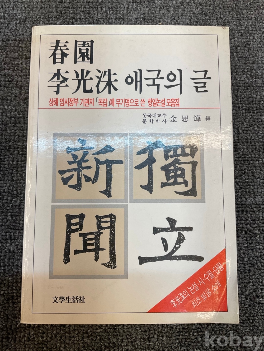 [한국근대사, 친일파, 실력양성] 김사엽, <춘원 이광수 애국의글 : 상해 임시정부 기관지 독립에 무기명으로 쓴 항일논설 모음집>, 1988, 문학생활사, p. 308, 상태 중상급(사진참조)