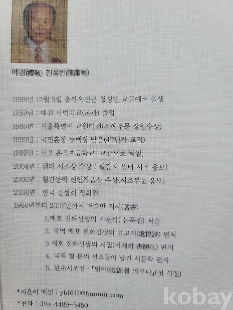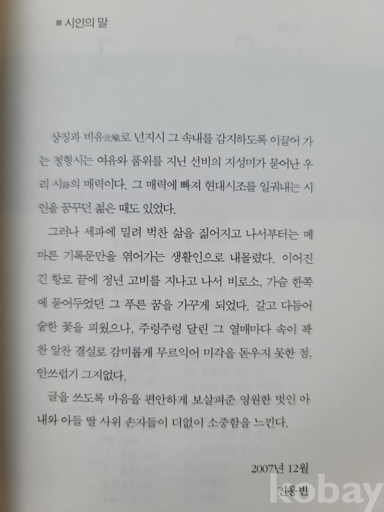 진용빈(충청북도 옥천: 1938) 시조집.