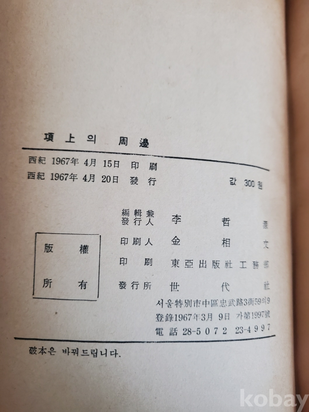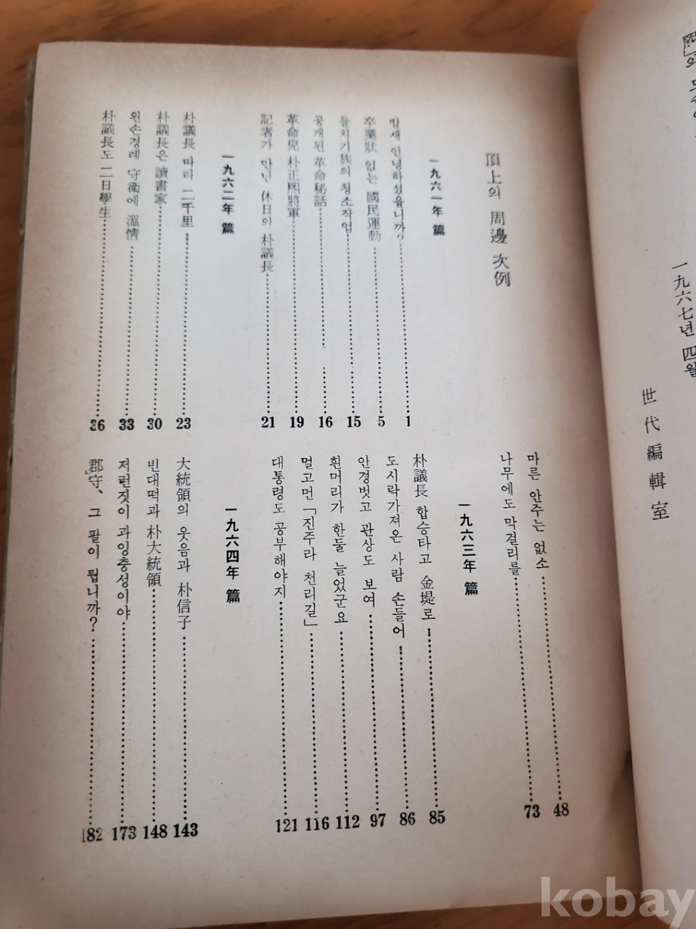 1. 정상의 주변 - 신문 단평에 나타난 박정희 대통령, 세대사, 1967년, 343쪽, 상태 상, 사진 참조
