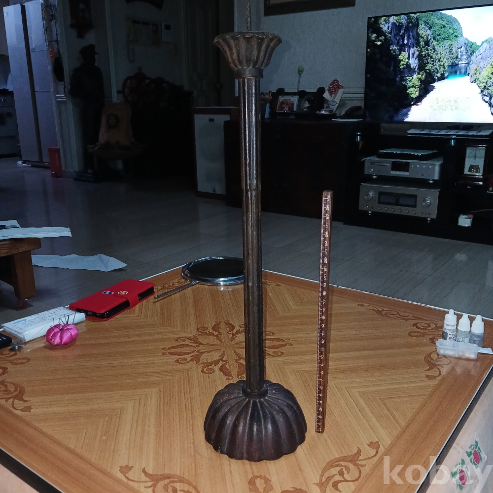 조각이 정교한 연꽃형 귀한 목등잔입니다