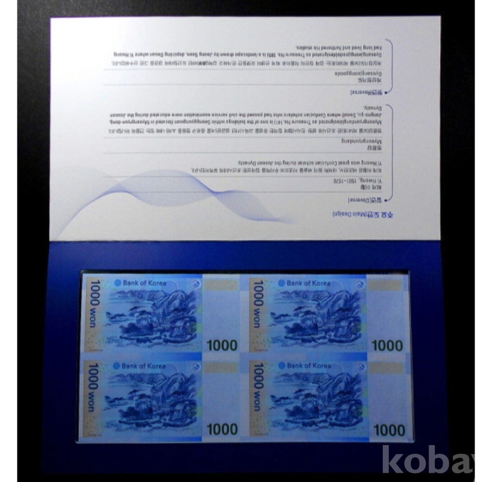 연결형 은행권 천원권 4면부 지폐입니다.